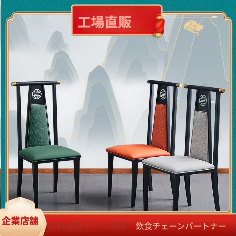 新中式ホテルダイニングチェア|モダンでシンプルな鉄製背もたれ付き|茶餐館や火鍋店に最適|リラックスできる快適な座り心地で、上質なダイニング体験を提供!