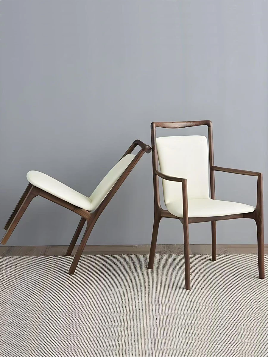 イタリアンデザイナーFynnの本革ダイニングチェア - 高級感あふれる無垢材製、ホワイトアッシュのアーム付き。リビングや書斎にぴったりなスタイリッシュな主役の椅子!