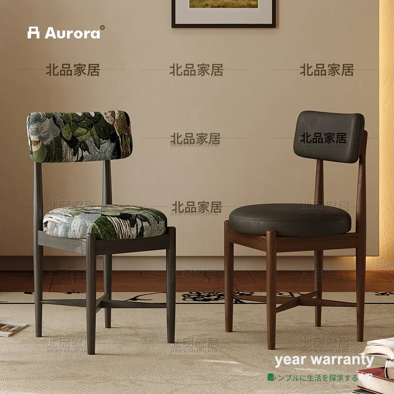 モダンミニマリスト全無垢材ダイニングチェア 北欧スタイル 家庭用背もたれ付きレストランホテル向け 創造的なトレンディ合皮スツール