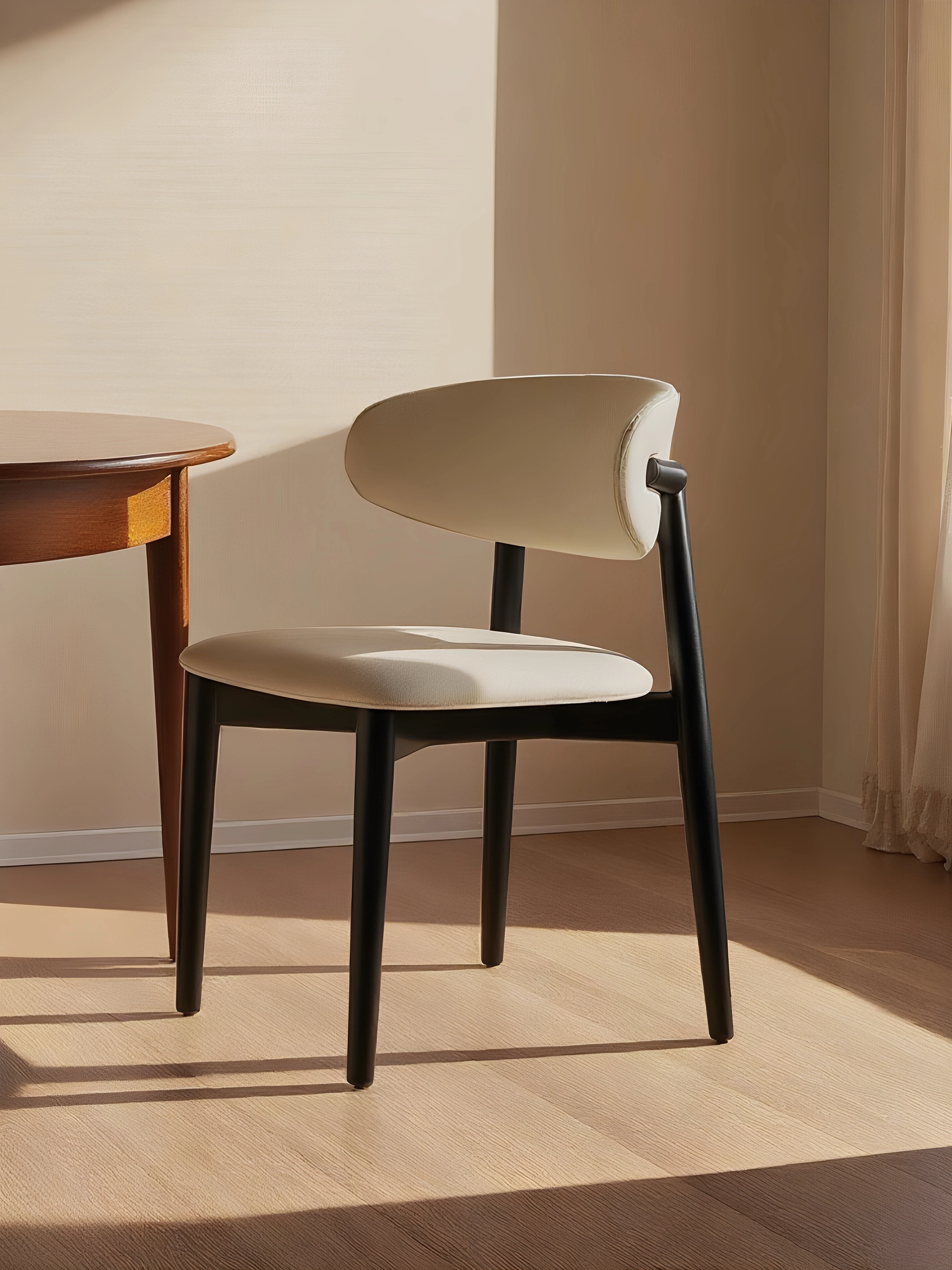 北欧デザインのホワイトアッシュ無垢材ダイニングチェア|シンプルで洗練された中古スタイル|高級侘寂風ソフトバックレストチェア|家族の団らんを彩る上質な一脚!