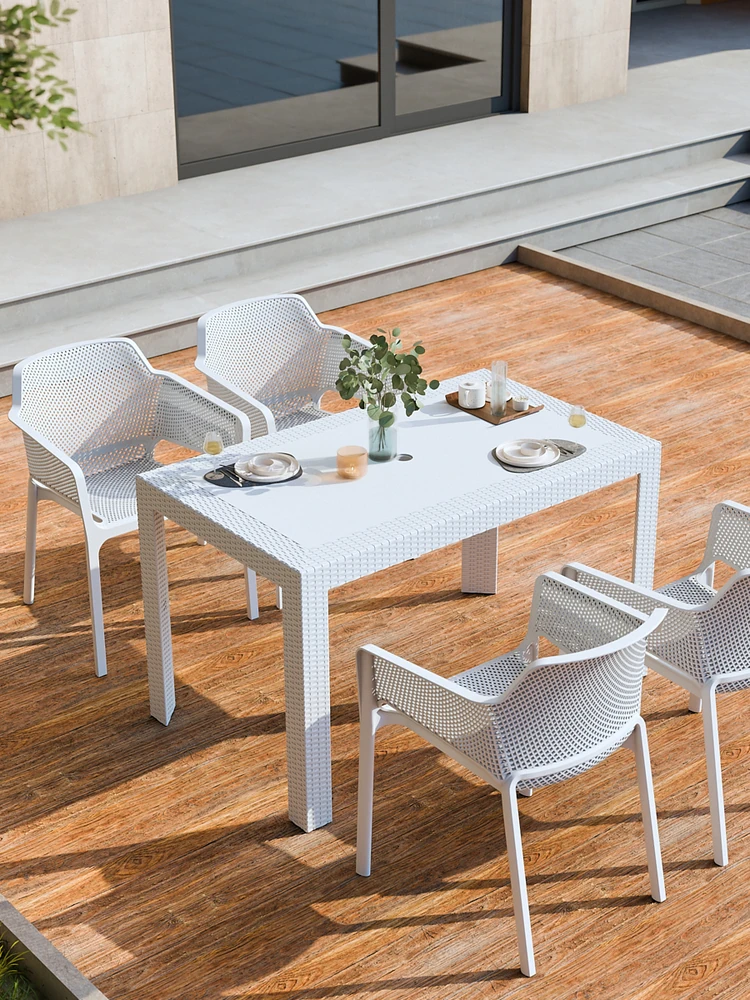 アウトドアテーブル&チェアセット - プラスチック製、庭やバルコニーに最適なリラックス空間を演出!屋外での楽しいひとときをお届けする、スタイリッシュな組み合わせです。