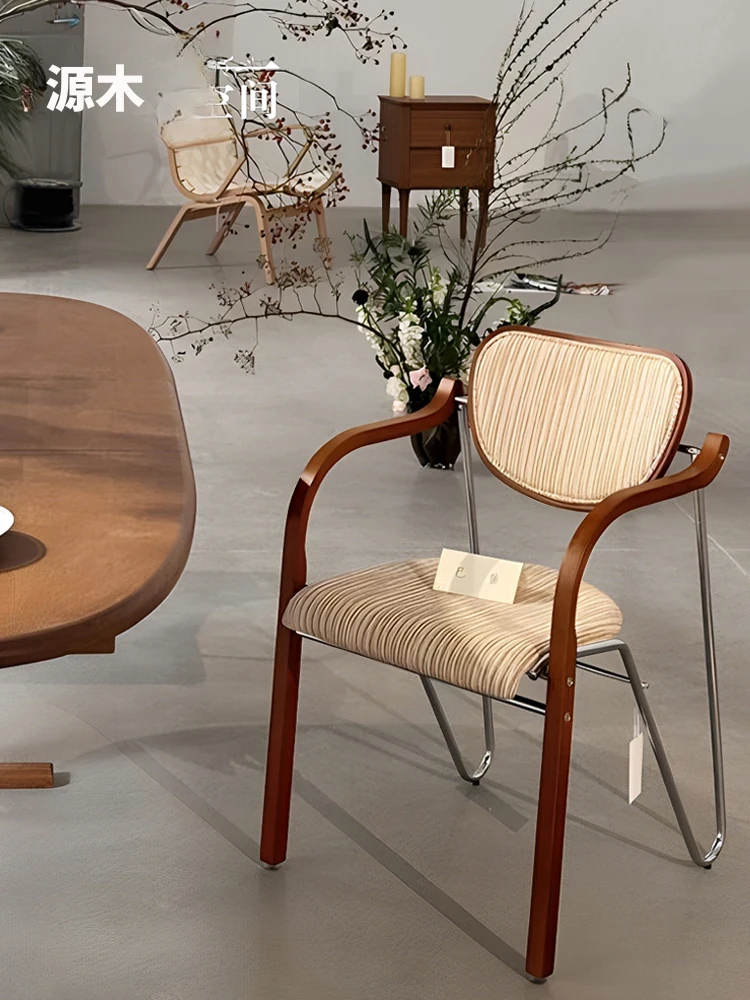 フランス風高級無垢材ダイニングチェア - おしゃれな背もたれ付き、和モダンな侘び寂びスタイルのアートソフトパッケージ、書斎やダイニングに最適なリラックスチェア!