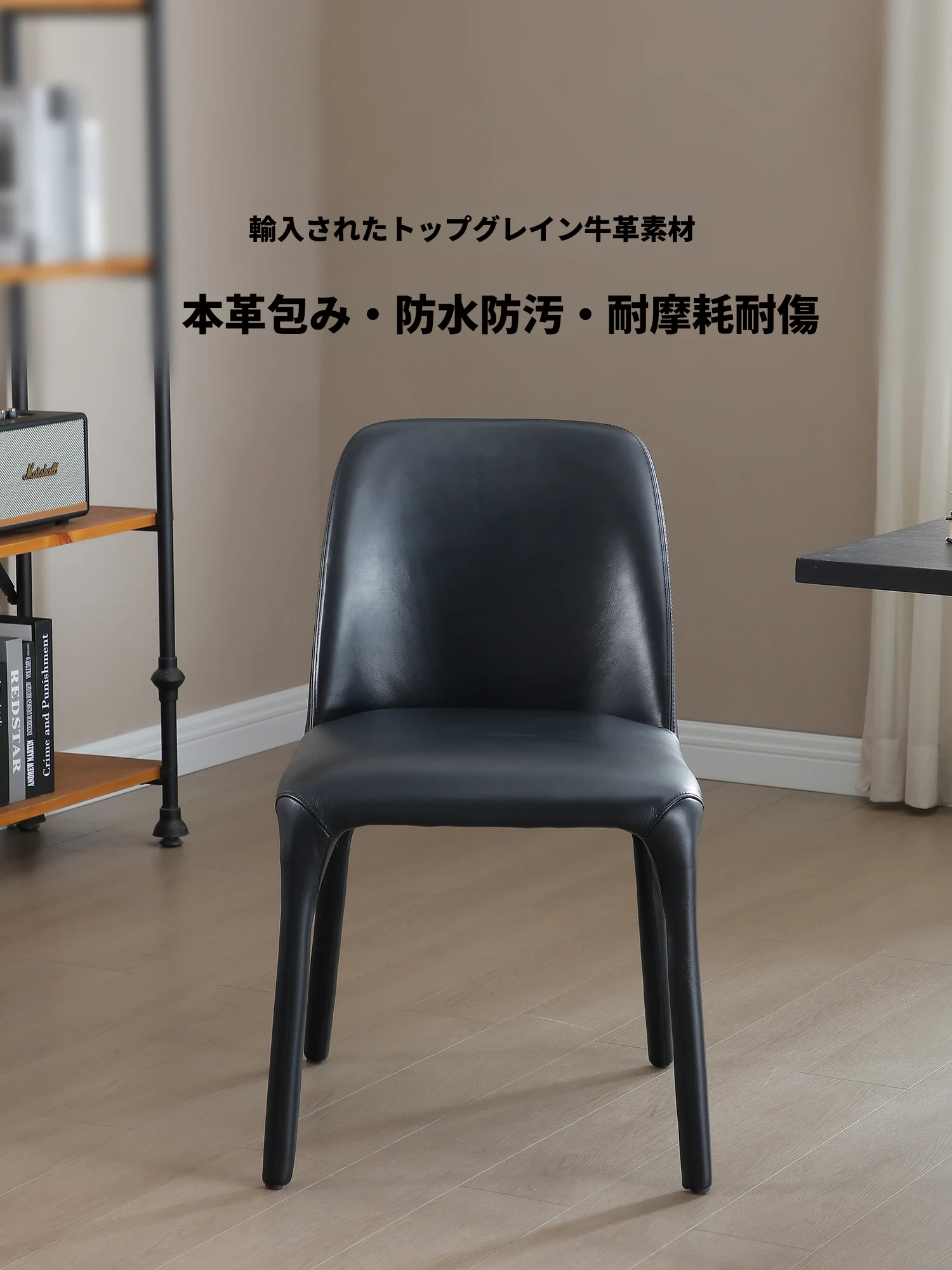 イタリアンミニマルデザイン 本革製ダイニングチェア 家庭用 本牛革使用 2025年新作 デザイナーの侘び寂び風レザー椅子で、シンプルで洗練された空間を演出。
