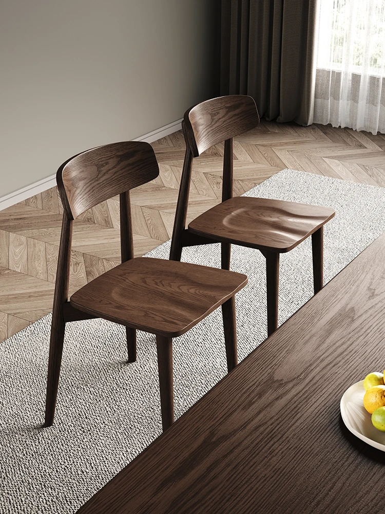 無垢材のダイニングチェア - ホワイトアッシュウッド×ウォールナットカラーの新中式デザイン。狭いスペースにも最適な現代的でシンプルな背もたれ付き。あなたの食卓に優雅さをプラス!