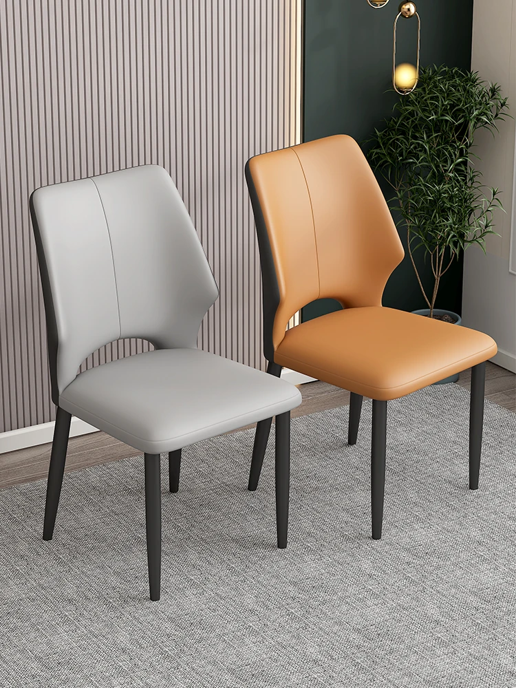 北欧風のラグジュアリーなレストランチェア - ソフトレザーとアイアンを使用した高級リラックスバックチェア、ホテルや個室に最適なデザイン!おしゃれな空間を演出し、特別なひとときを提供します。