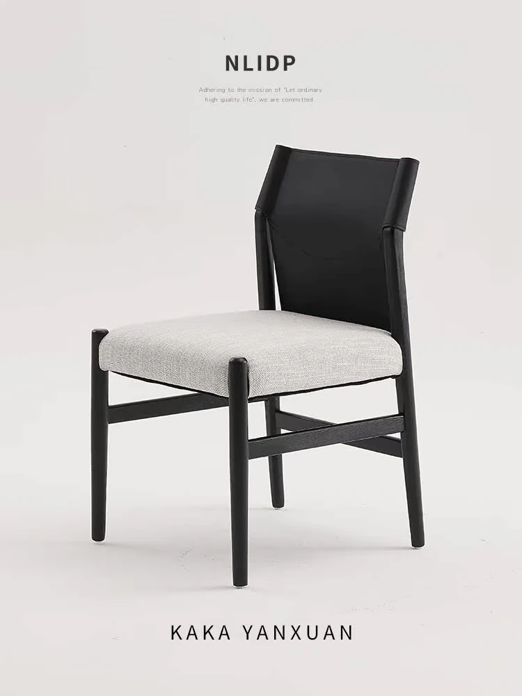 イタリアンハイエンド無垢材ダイニングチェア - 北欧ミニマリズムデザイン、上質なレストランにもぴったりなホワイトアッシュとサドルレザーの贅沢な椅子。