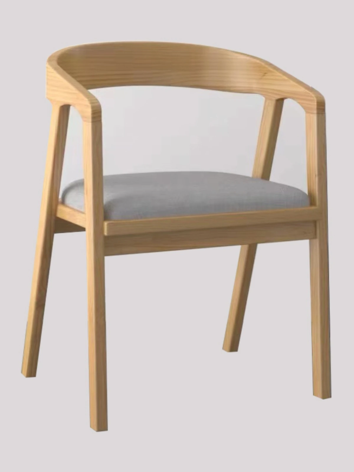 北欧風シンプルデザインの無垢材ダイニングチェア - ホワイトアッシュ製、カフェやレストランに最適!くつろぎの背もたれ付きで、ポテトチップスを楽しむひとときを演出。おしゃれで機能的な一脚をあなたの空間に!