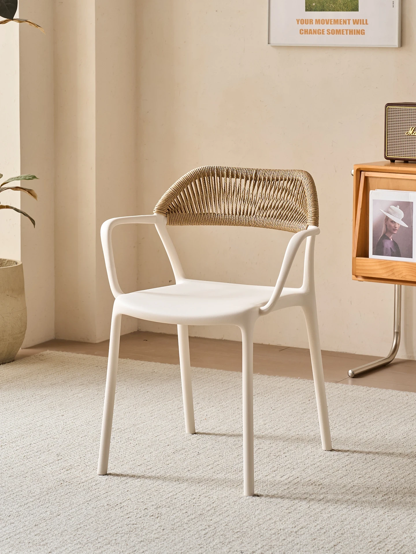 Nordic Creamy Woven Plastic Dining Chair - Modern Minimalist with Backrest for Home, Perfect for Balcony Table Set, Stylish Leisure Chair