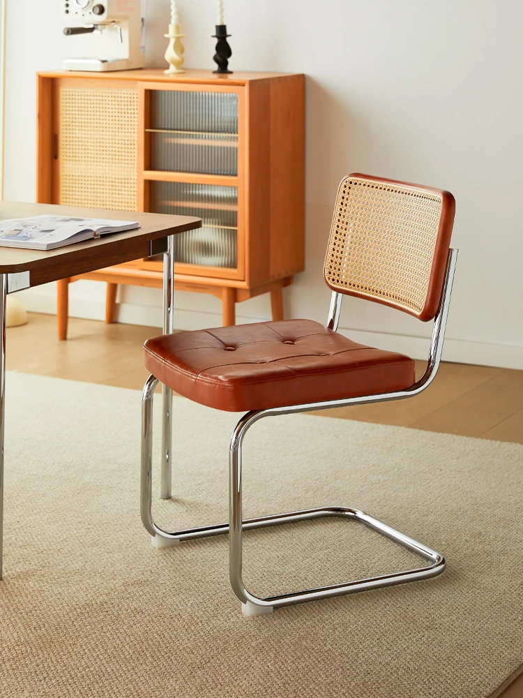 Luxury Leather Dining Chair - High-End Designer Single Chair with Modern Minimalist Design, Stylish Stainless Steel Base, Perfect for Home Decor and Trendy Spaces.