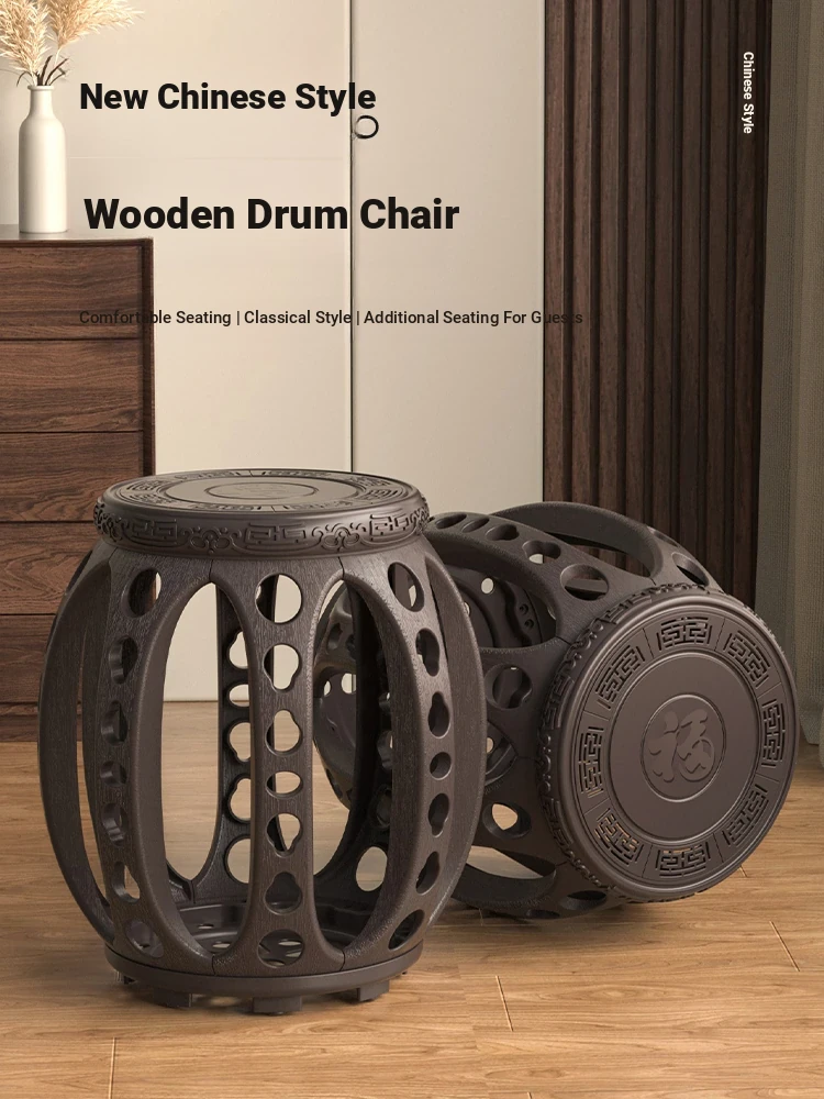 Walnut Wood Coffee Table Stool for Living Room - Vintage Dance Bench, Guzheng Drum Stool, and Plastic Dining Chair - Perfect for Your Tea Space and Home Decor