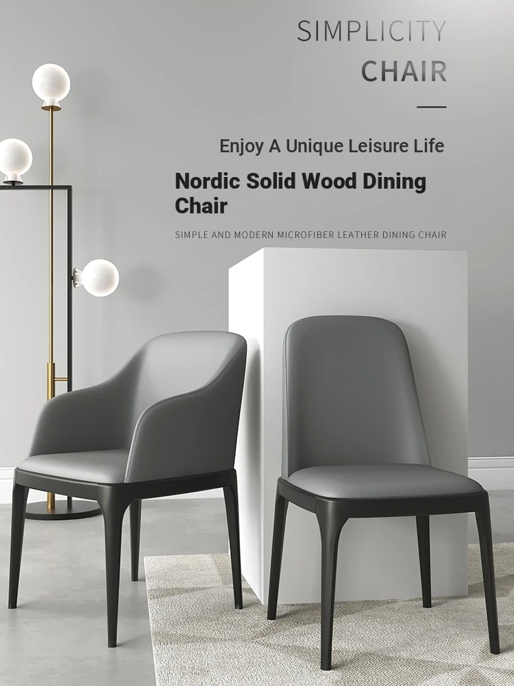 Nordic Luxury Dining Chair - Modern Minimalist Solid Wood Backrest Chair for Home, Soft Upholstered, High-End Feel, Perfect for Hotels and Relaxation