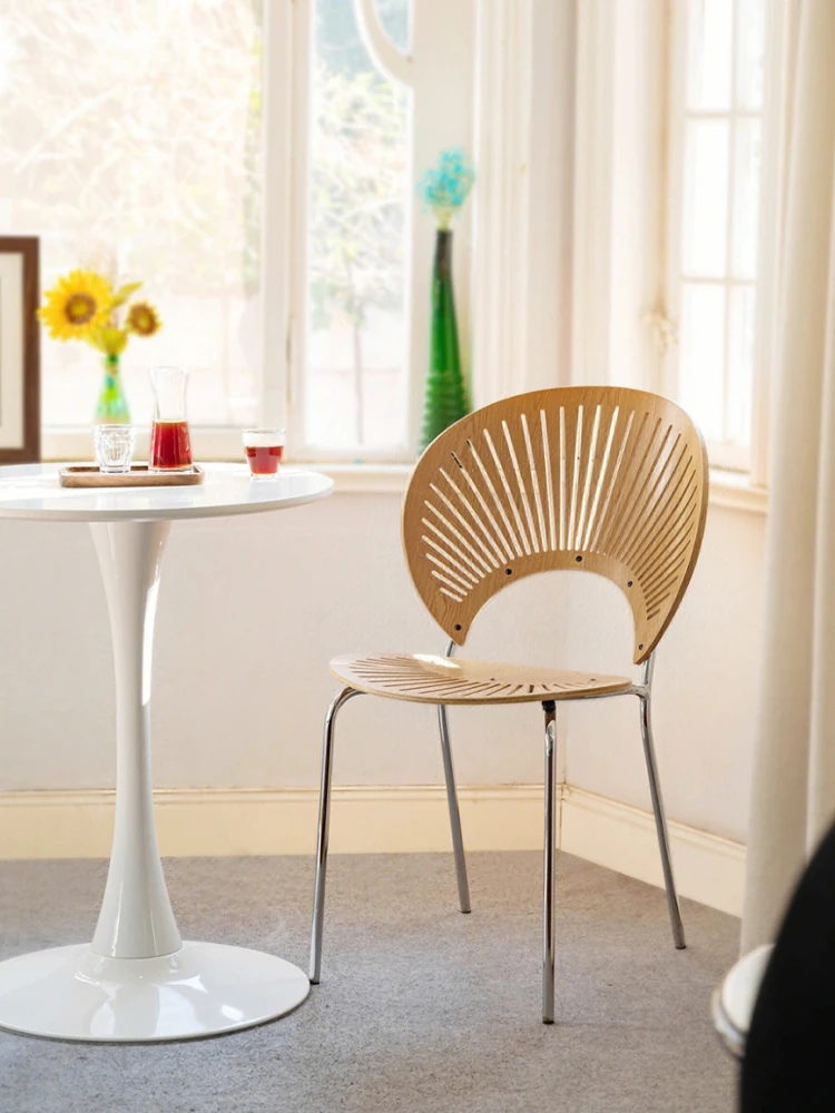 Italian Style Modern Dining Chair - Minimalist Solid Wood Restaurant Chair for Small Spaces, Vintage Aesthetic with Backrest, Perfect for Dining or Vanity Use