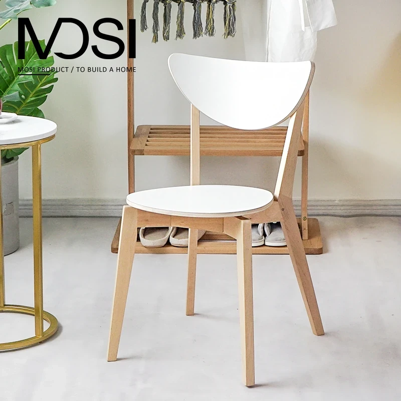 Nordic Vintage Solid Wood Dining Chair - White Ash Minimalist Wabi-Sabi Design for Small Spaces, Ideal for Dining Rooms and Home Offices