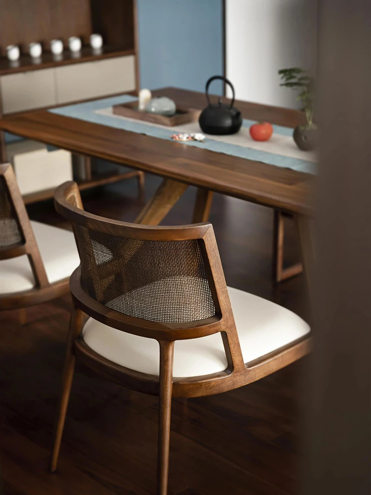 Vintage Solid Wood Dining Chair - Wabi-Sabi Style Rattan Chair with Nordic Elegance, Minimalist Design for Relaxed Dining Experience