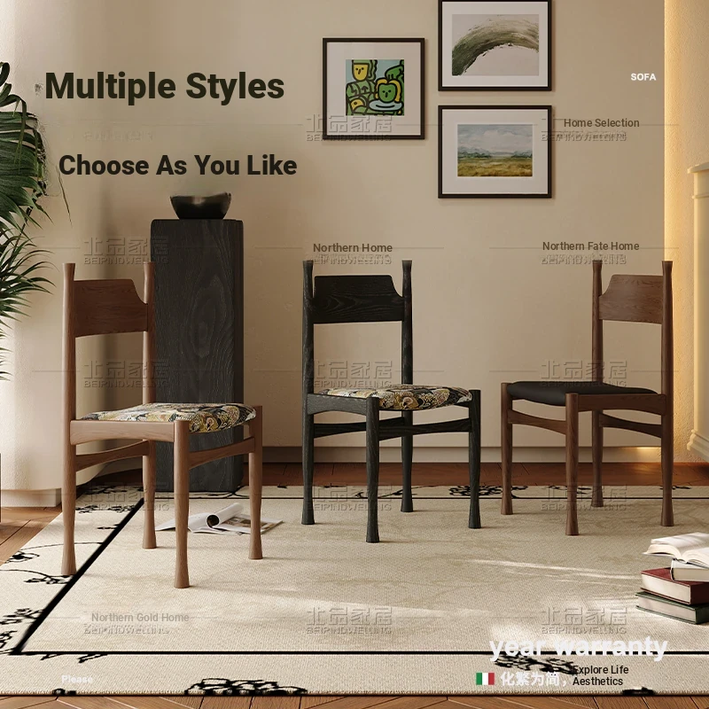 Designer Solid Wood Dining Chair - Nordic Minimalist Vintage Style for Home Use, Soft Cushion Backrest, Ideal for Japanese Dining Rooms and Stylish Dining Sets.