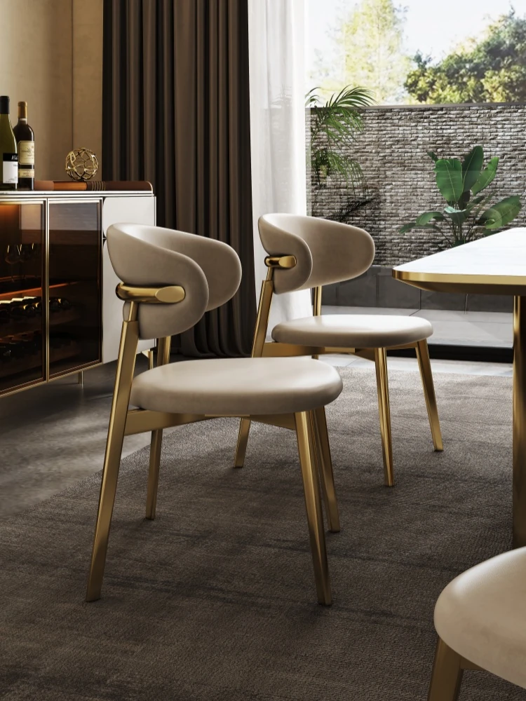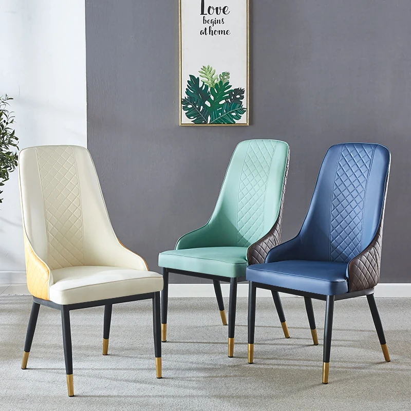 Stylish Nordic Leather Dining Chair - High-End Soft Upholstered Iron Frame, Perfect for Hotels and Restaurants, Ideal for Casual Meetings and Cozy Dining Spaces