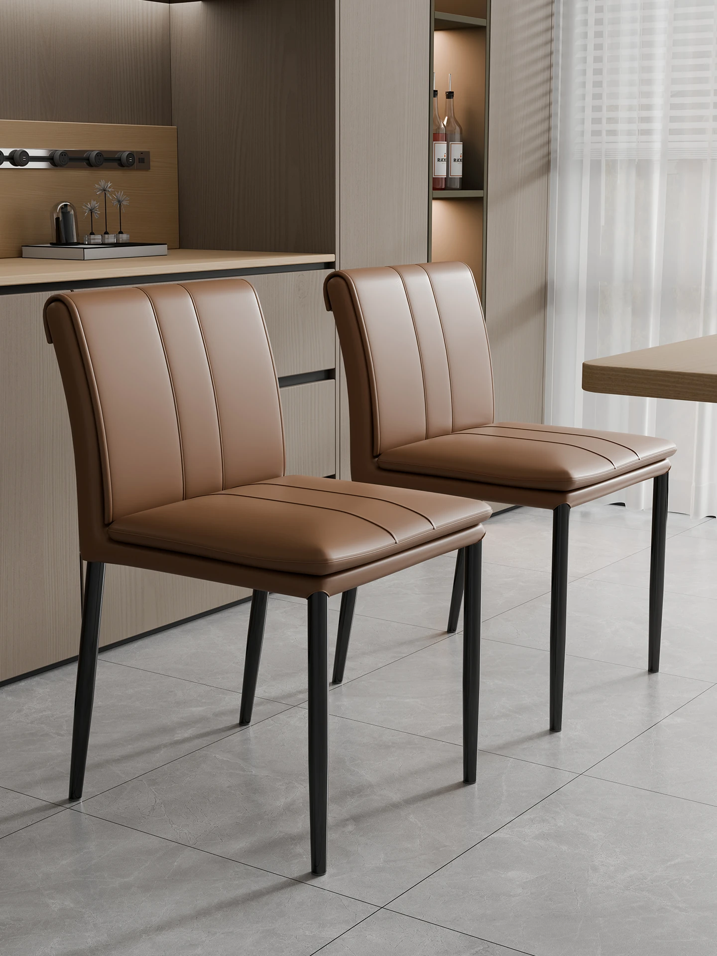 Italian Chic Leather Dining Chair – Modern Minimalist Design for Home & Nordic Style Meeting Spaces – Elegant Backrest Stool for Hotel Dining Tables