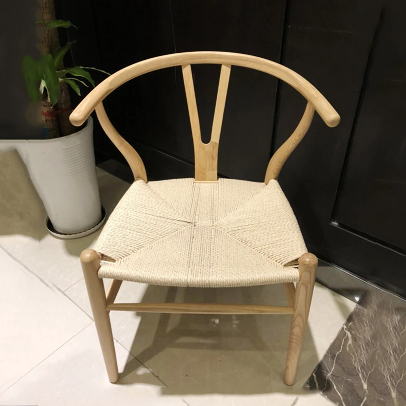 Solid Wood Dining Chair - Nordic Modern Minimalist Design, Ash Wood for Home Use, Perfect for Dining Rooms, Cafés, and Comfortable Snack Seating with Walnut Backrest.