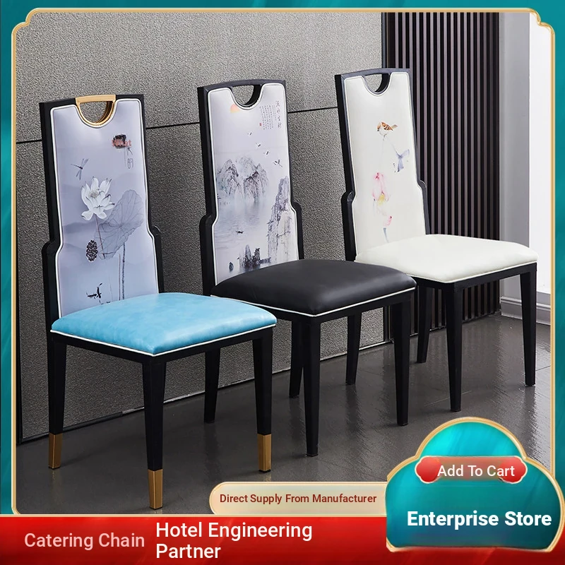 Modern New Chinese Style Luxury Restaurant Chairs with Backrest - Elegant Iron Dining Chairs for Hotel Banquets and Themed Hotpot Rooms