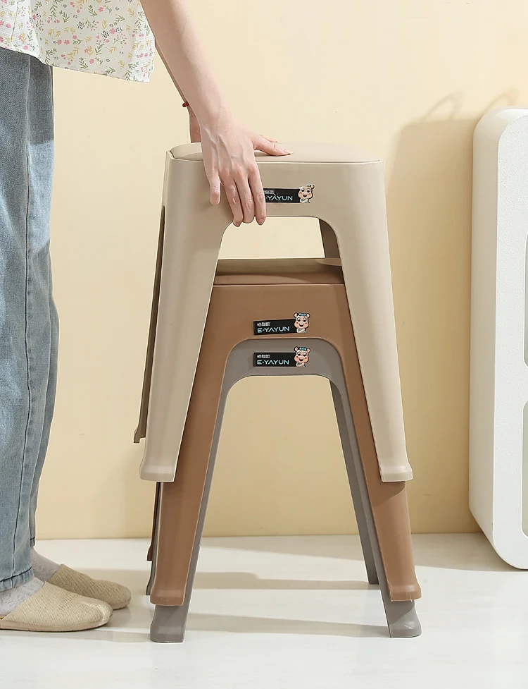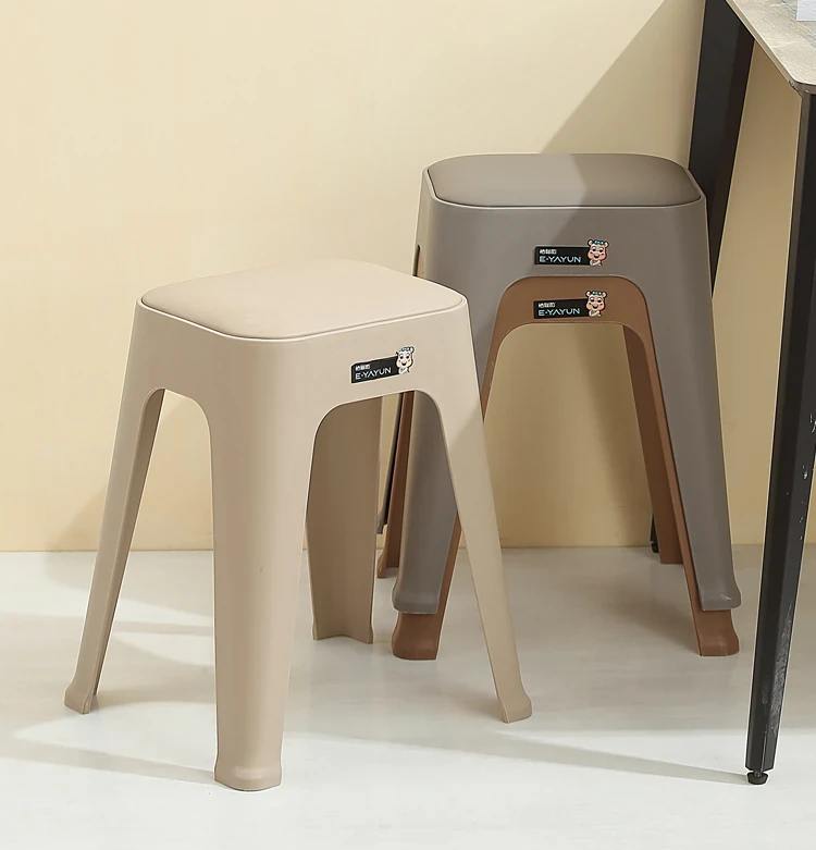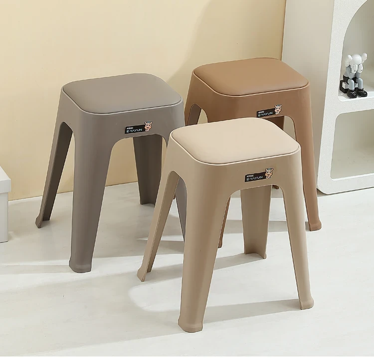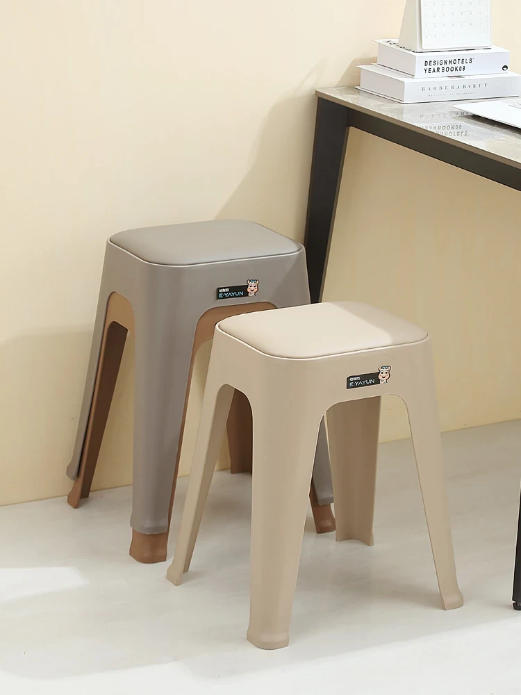 2024 New Modern Minimalist Style Thickened Plastic Stool - Soft-Padded, Stackable High Stool for Home Use, Chic Dining Chair for a Touch of Luxury