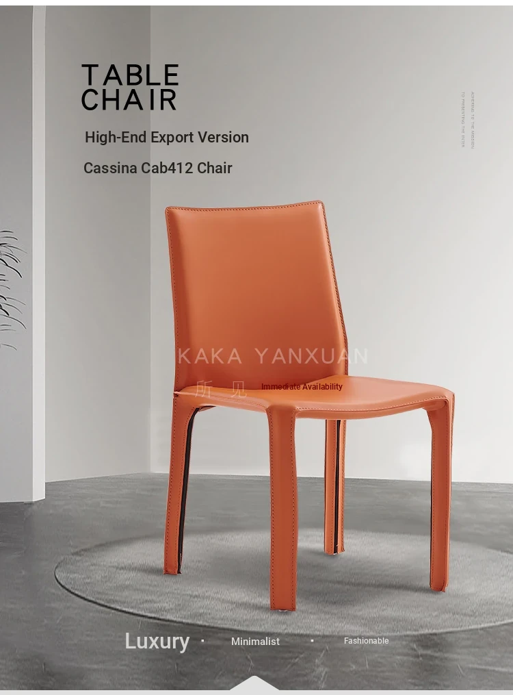 Cassina CAB412 Italian Saddle Leather Dining Chair - Designer Art Minimalist Home Chair with Backrest, Perfect for Elegant Dining Spaces