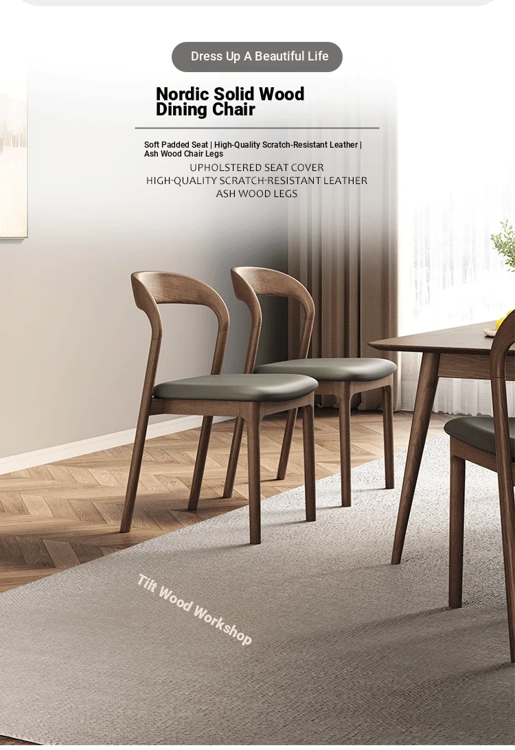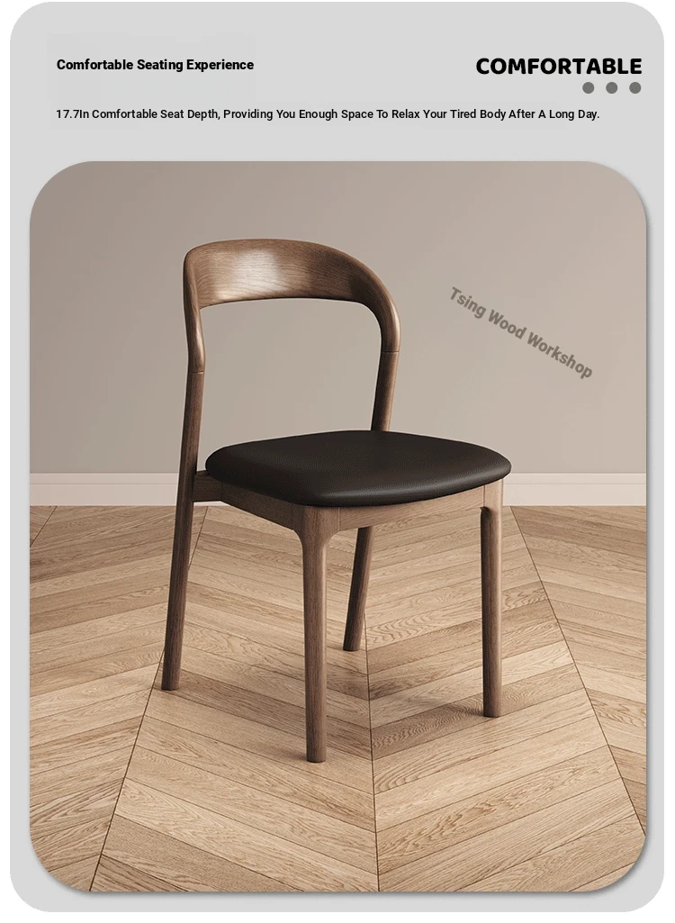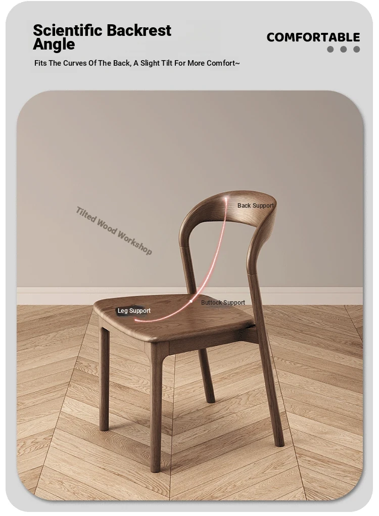 Designer Solid Wood Dining Chair in Walnut Finish - Ash Wood, Perfect for Home, Restaurants, Cafes, and Study Rooms. Comfortable Backrest for Meetings and Relaxation.