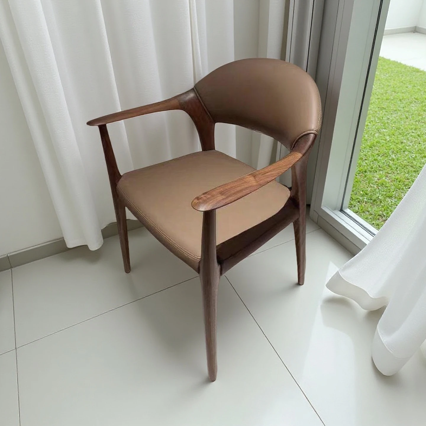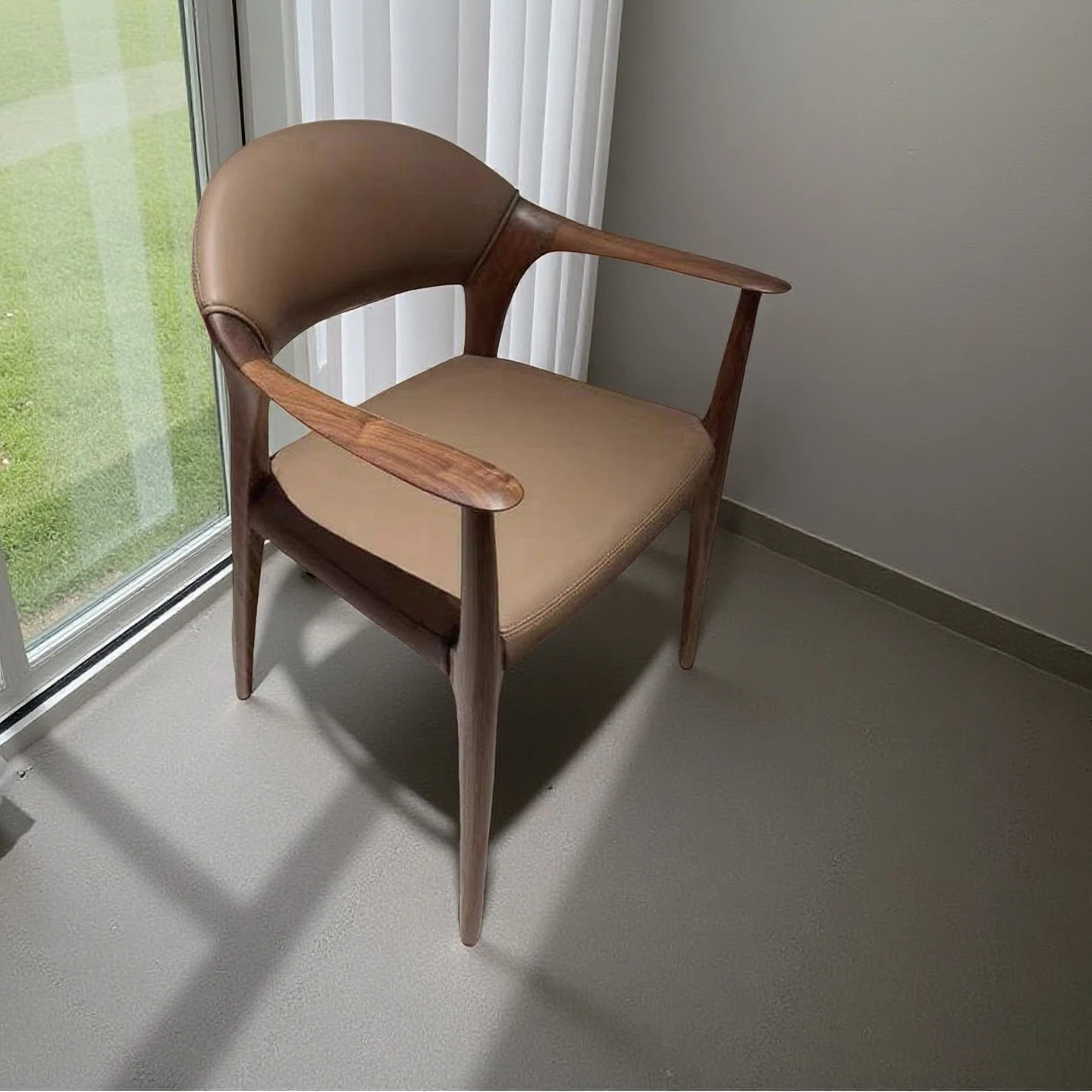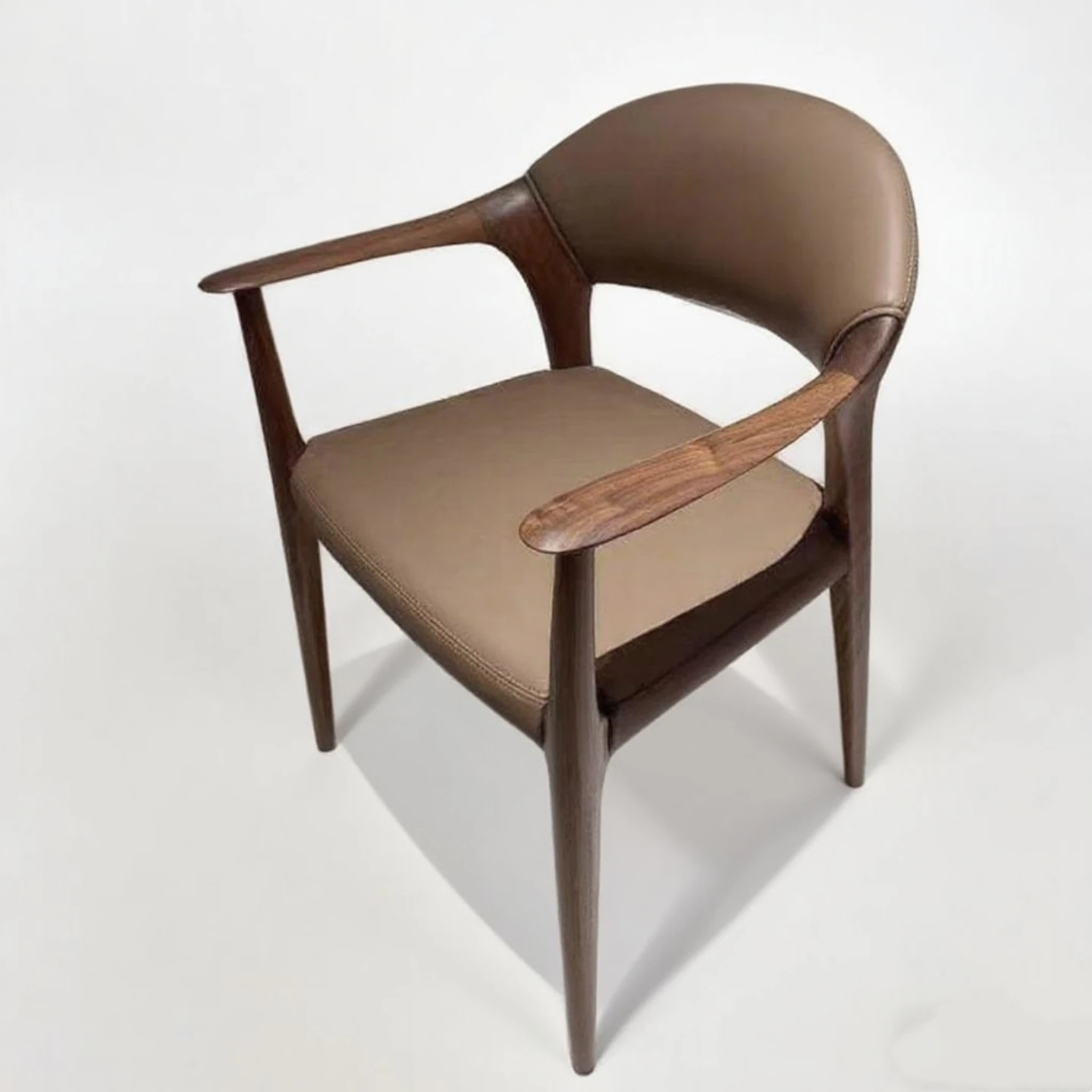 Elegant Black Walnut Solid Wood Tea Chair - Italian Style Armchair for Home, Dining, Coffee Shop, and Reception. Comfortable Upholstered Seating Perfect for Conversations and Relaxation!