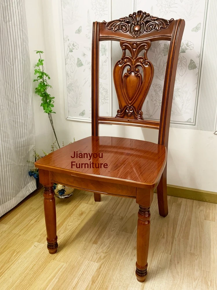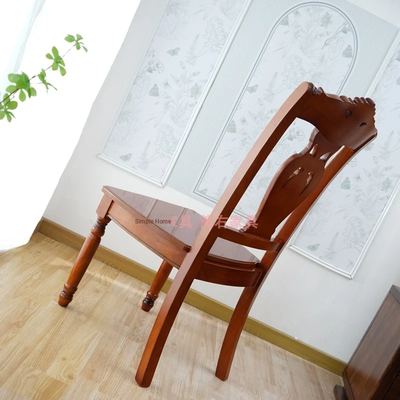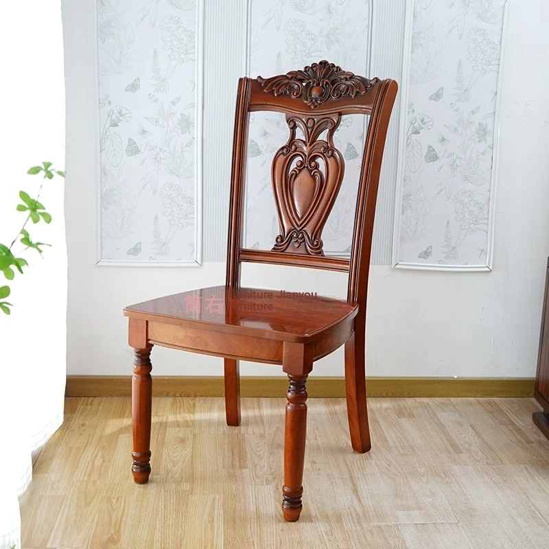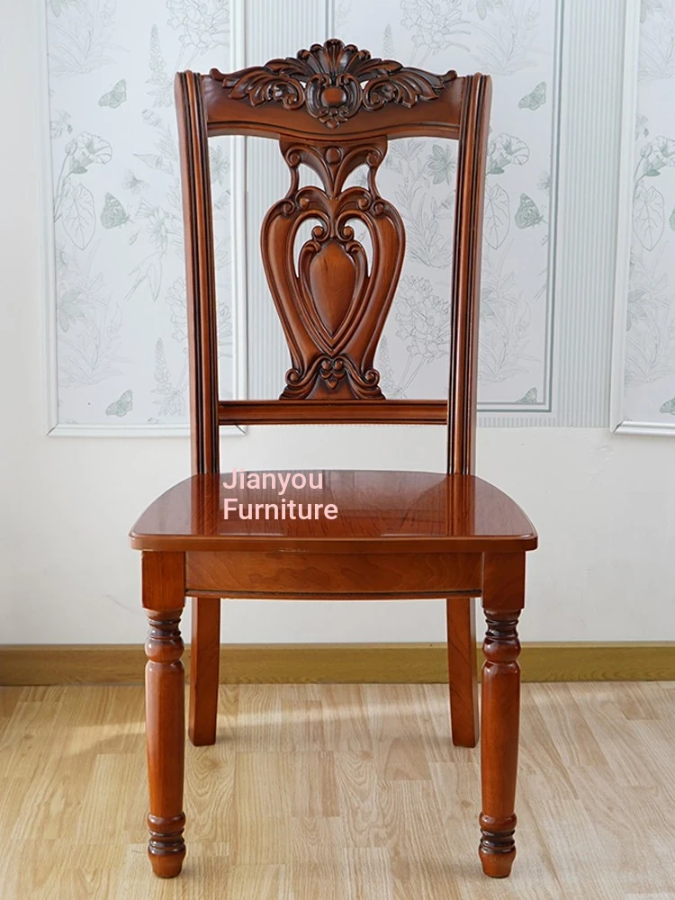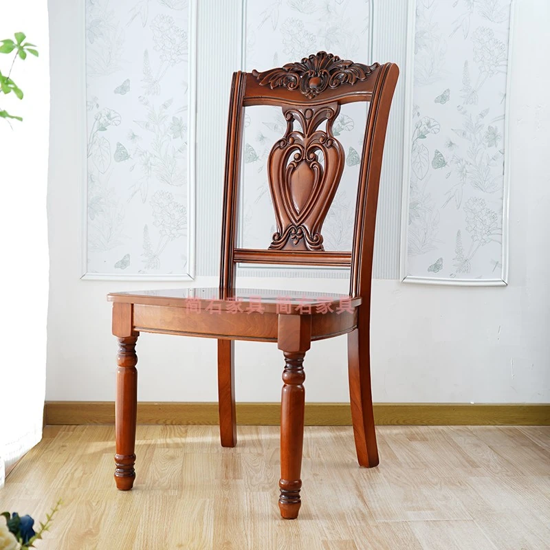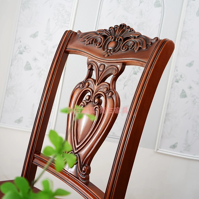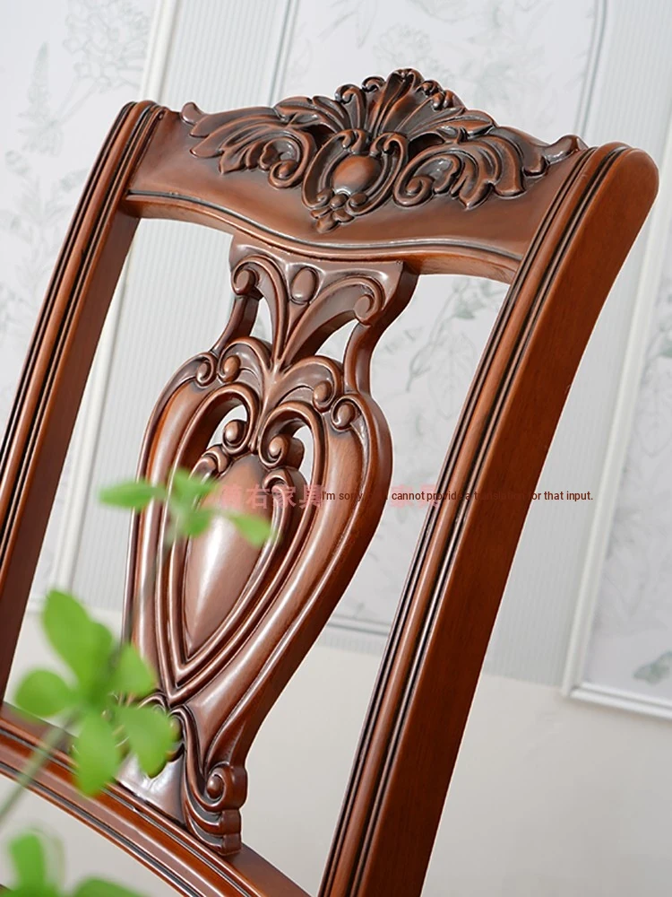 Elegant European-Style Wooden Dining Chair with Classic Carved Backrest - Vintage Solid Wood Armchair for Relaxed Dining Experience