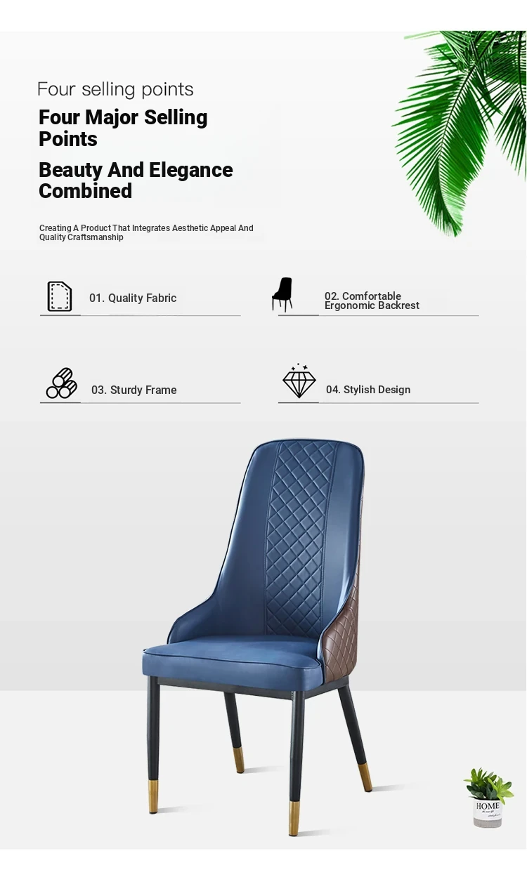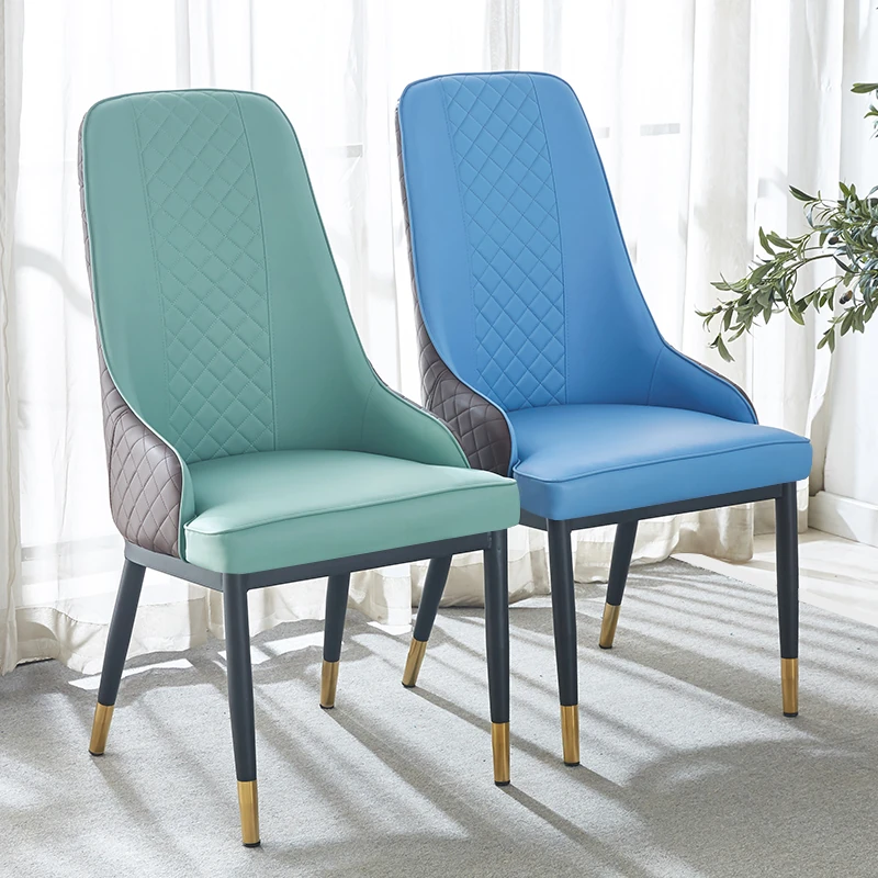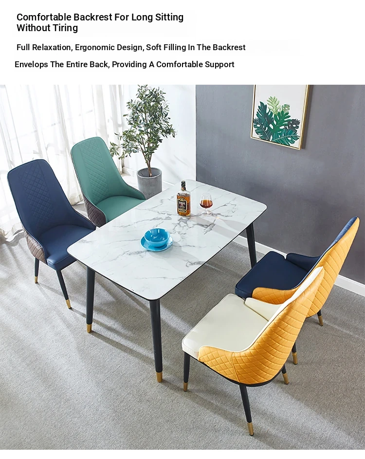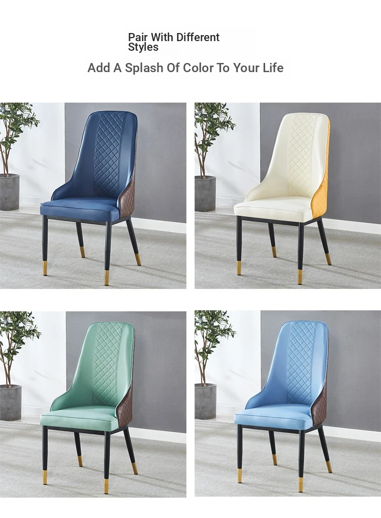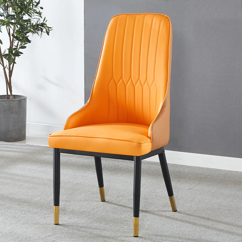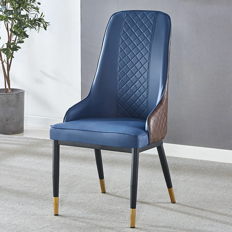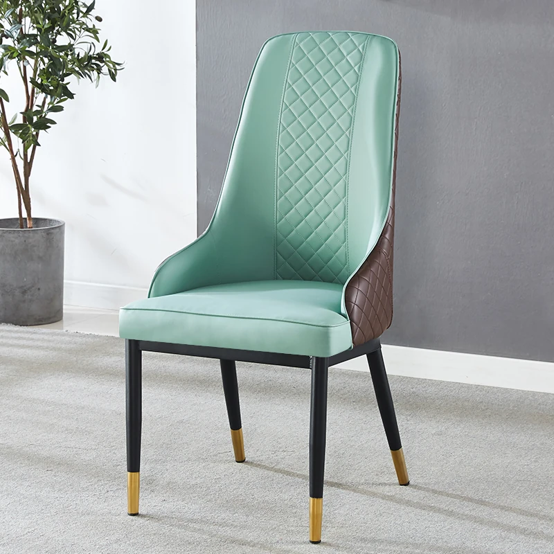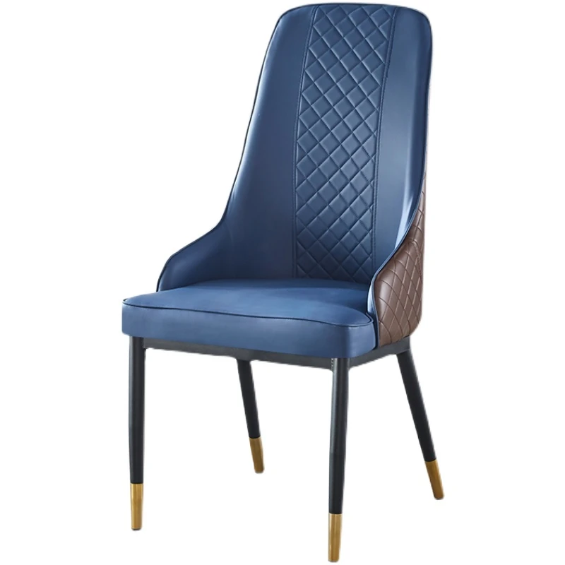 Elegant Italian Style Soft-Padded Dining Chair - High-Back Iron and Leather Restaurant Seat for Home and Luxury Hotel Booths