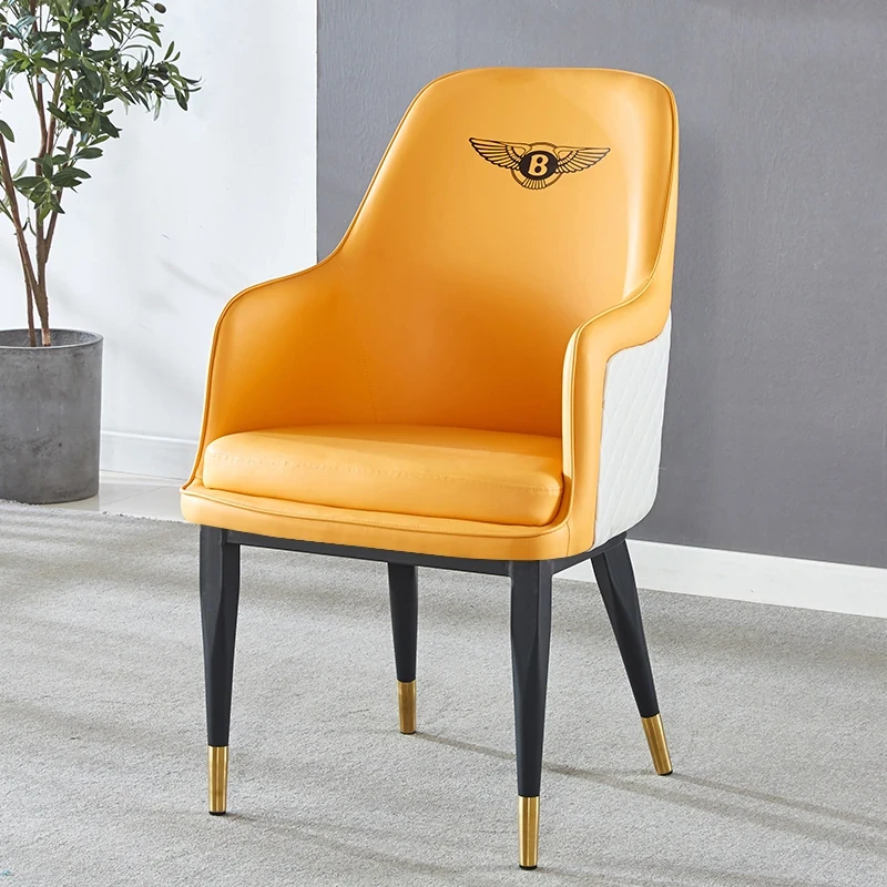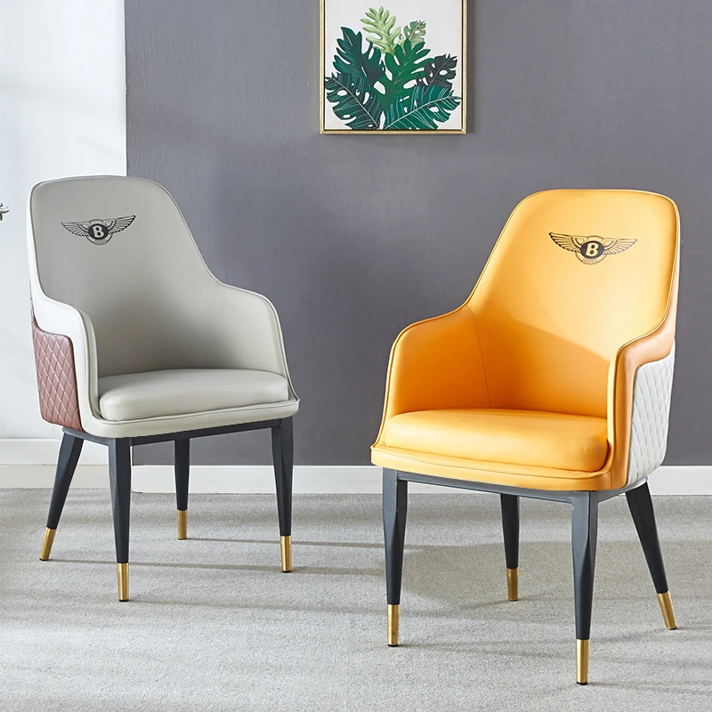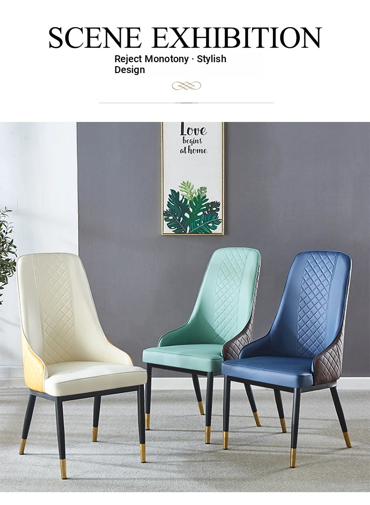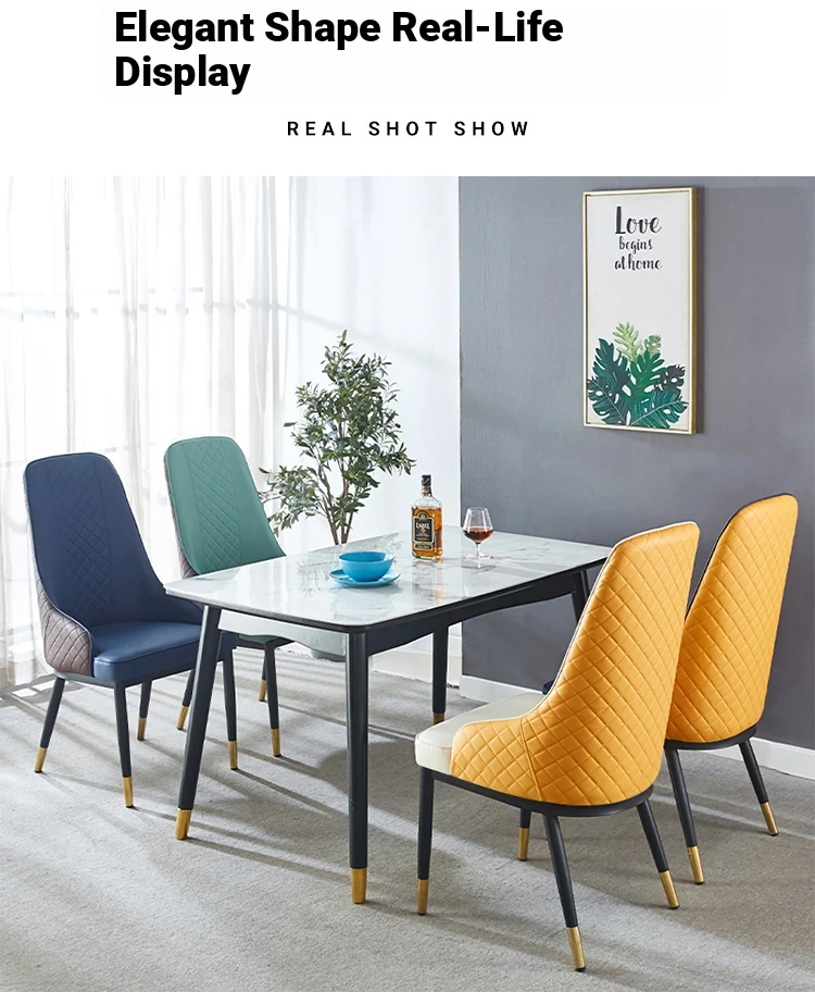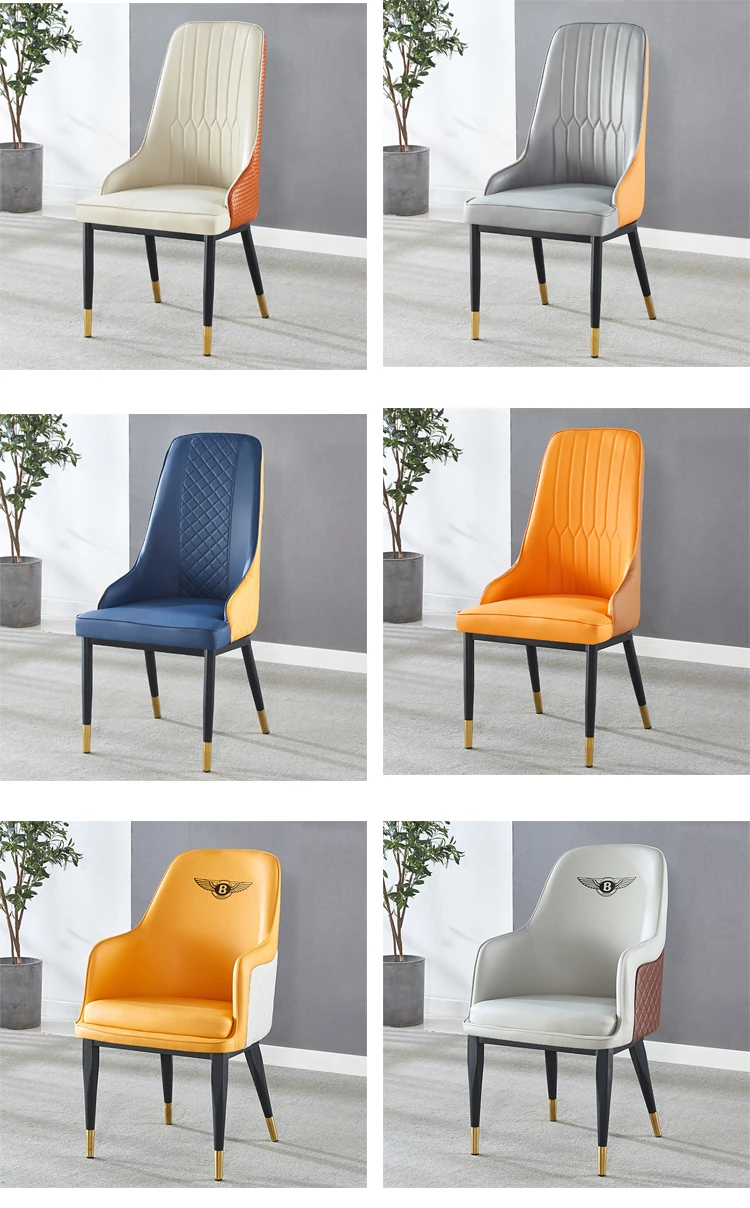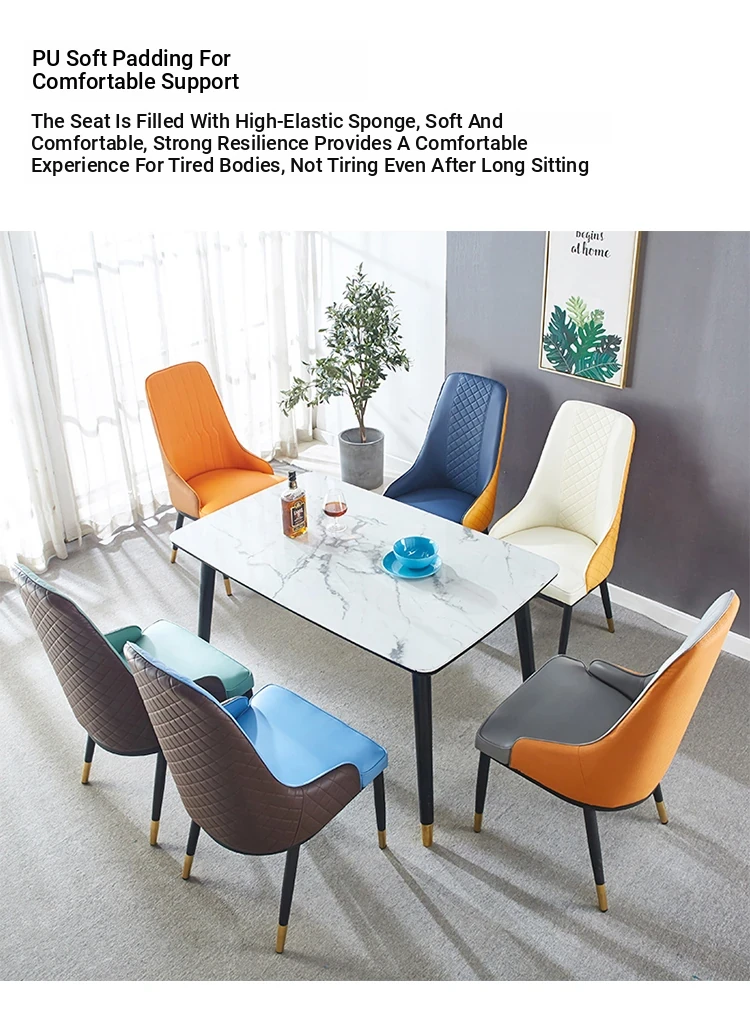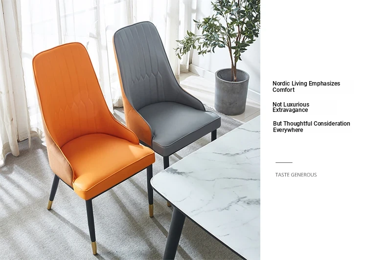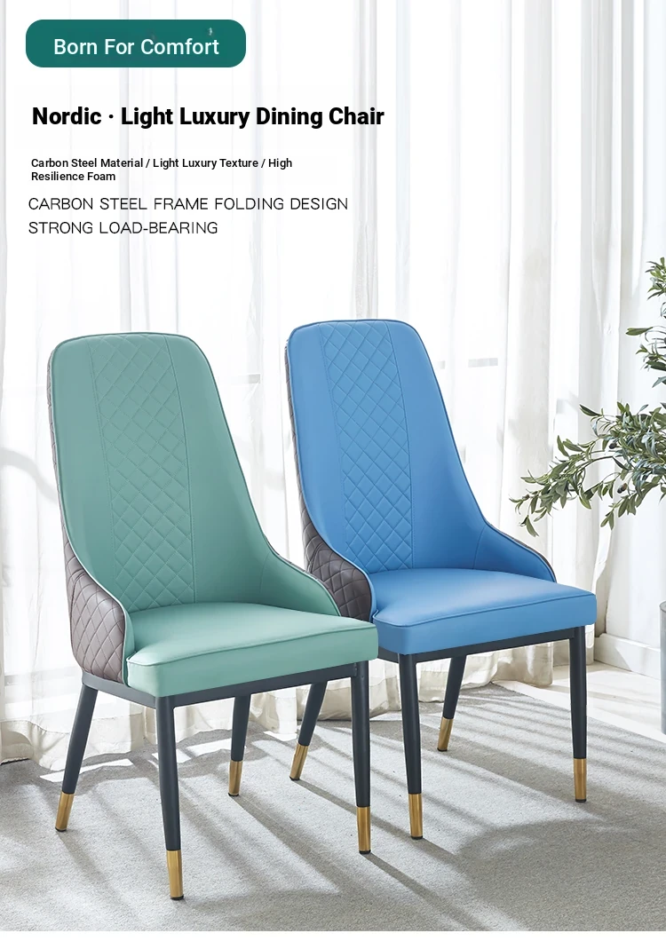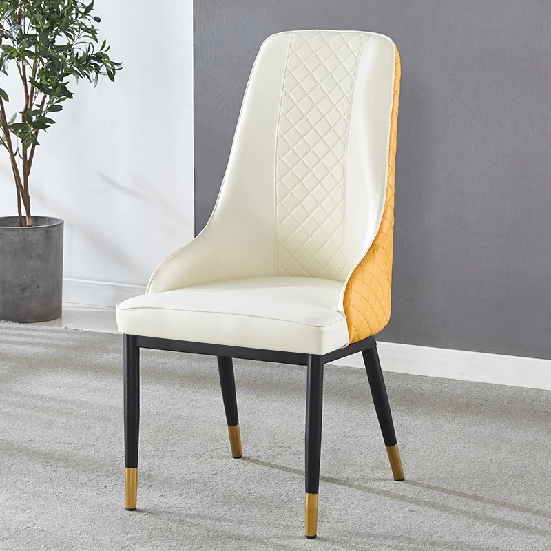 Elegant Italian Style Soft-Padded Dining Chair - High-Back Iron and Leather Restaurant Seat for Home and Luxury Hotel Booths