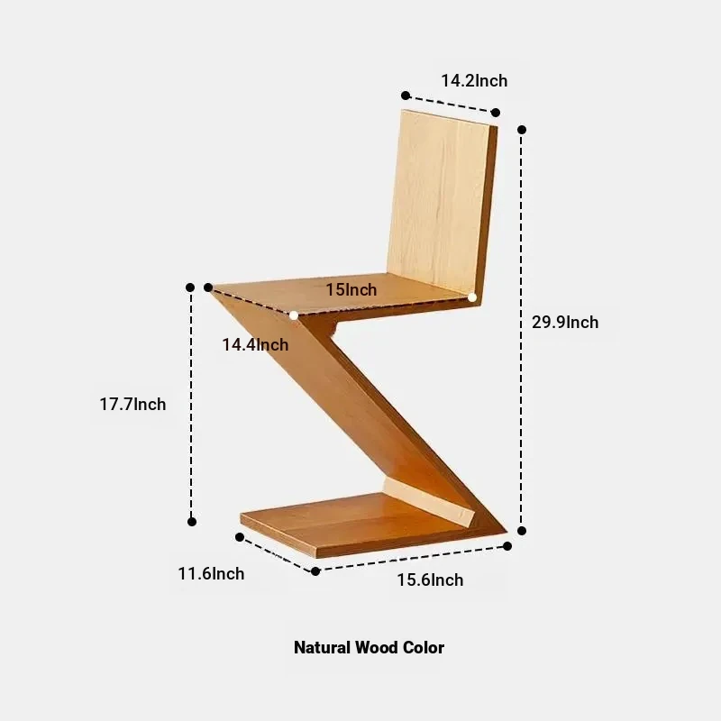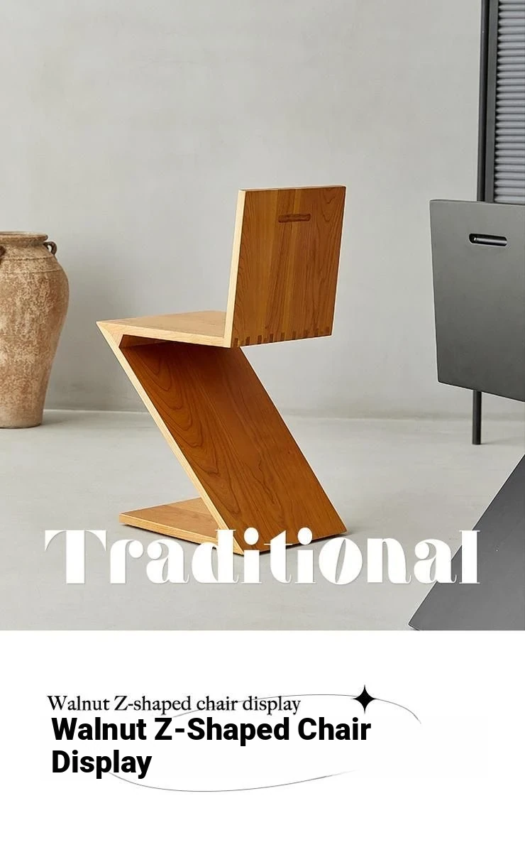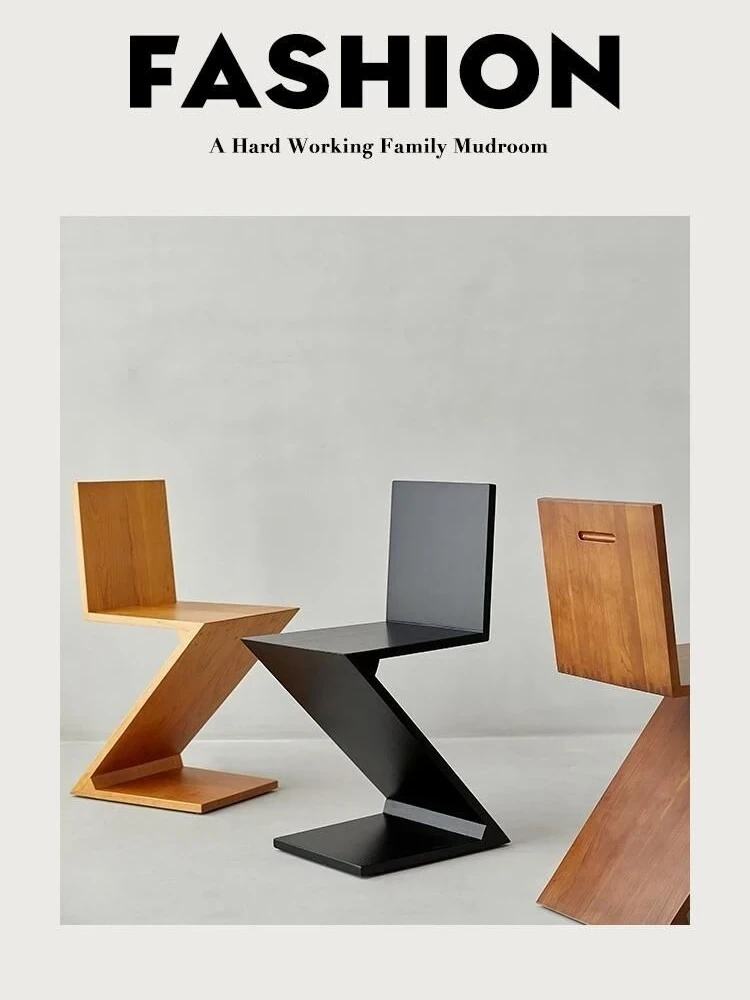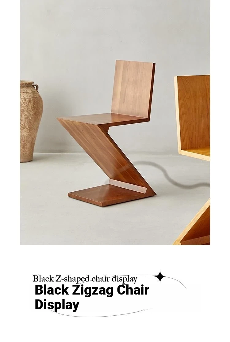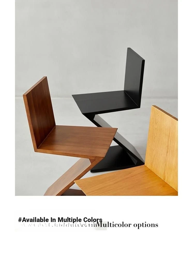 Elegant Solid Wood Dining Chair with Z-Shape Backrest – Minimalist Designer Armchair for Home Use, Perfect for a Touch of Luxury and Style in Your Living Space.