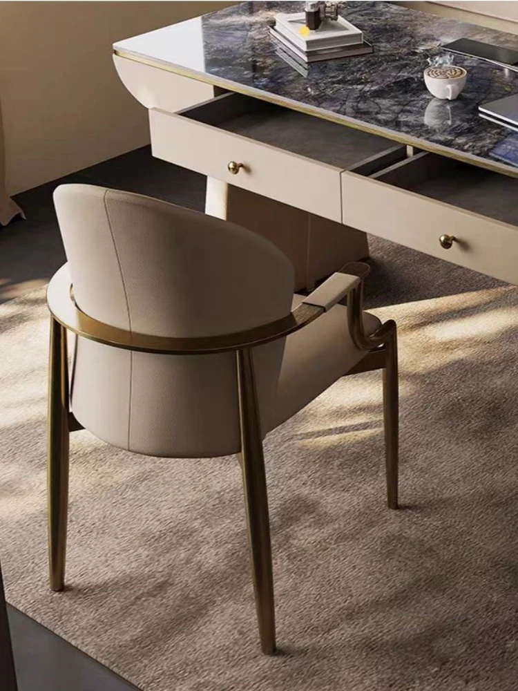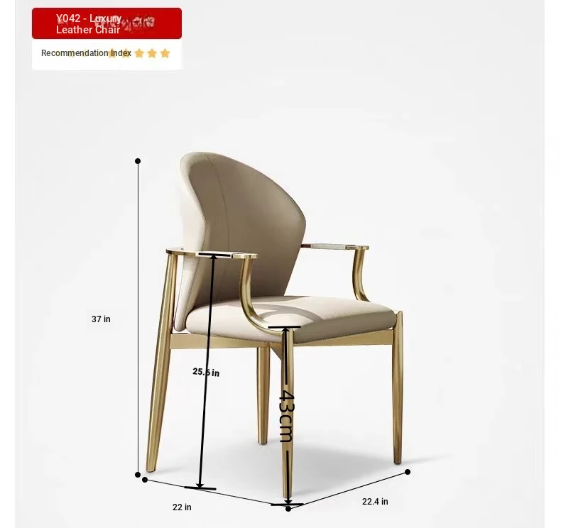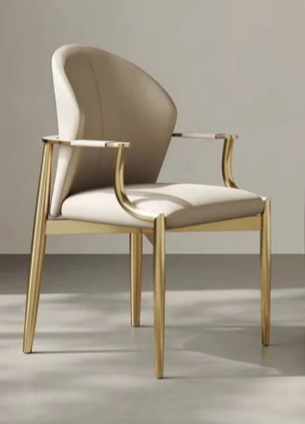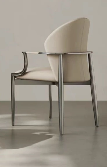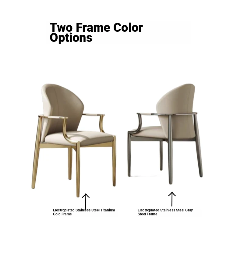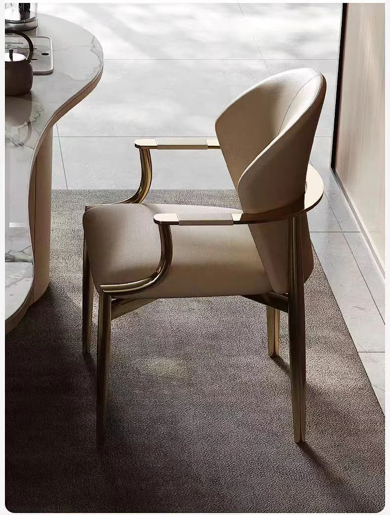 Genuine Leather Dining Chair with Armrests - Elegant Tea Chair for Dining, Study, or Balcony. Stylish Stainless Steel Frame for Ultimate Comfort and Luxury. Perfect for Home or Office Use!