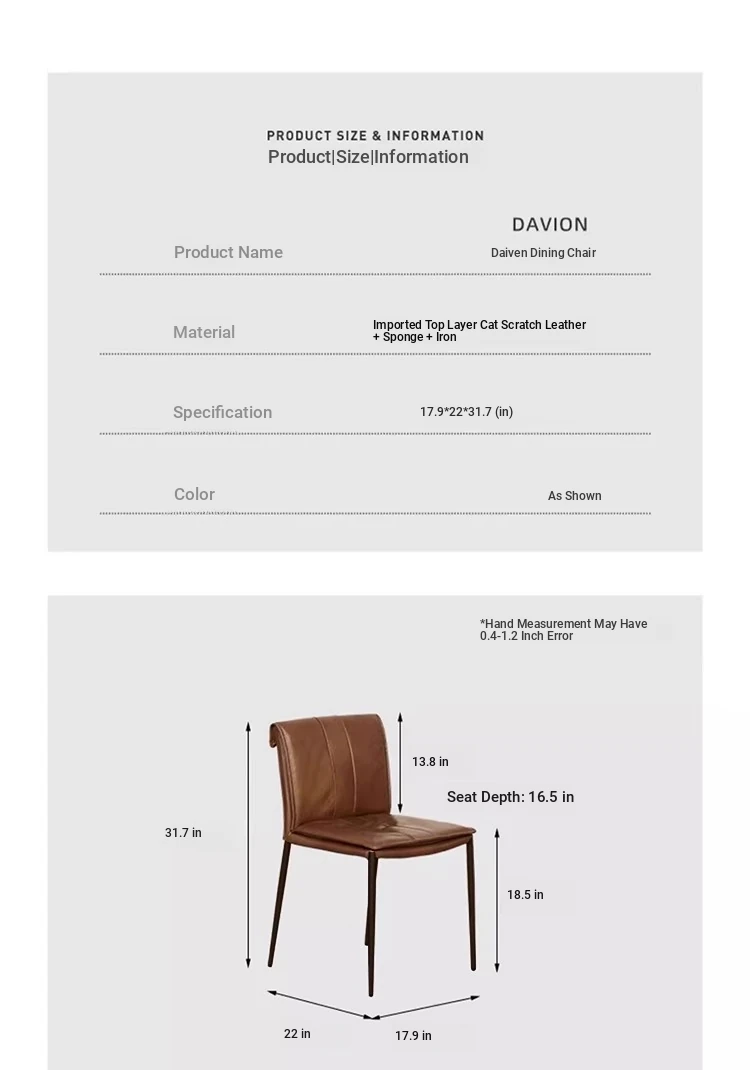Italian Chic Dining Chair - Luxury Saddle Leather, Stylish Minimalist Accent for Home & Hotel, Perfect for Living Room and Dining Areas, Trendy Design for Modern Spaces