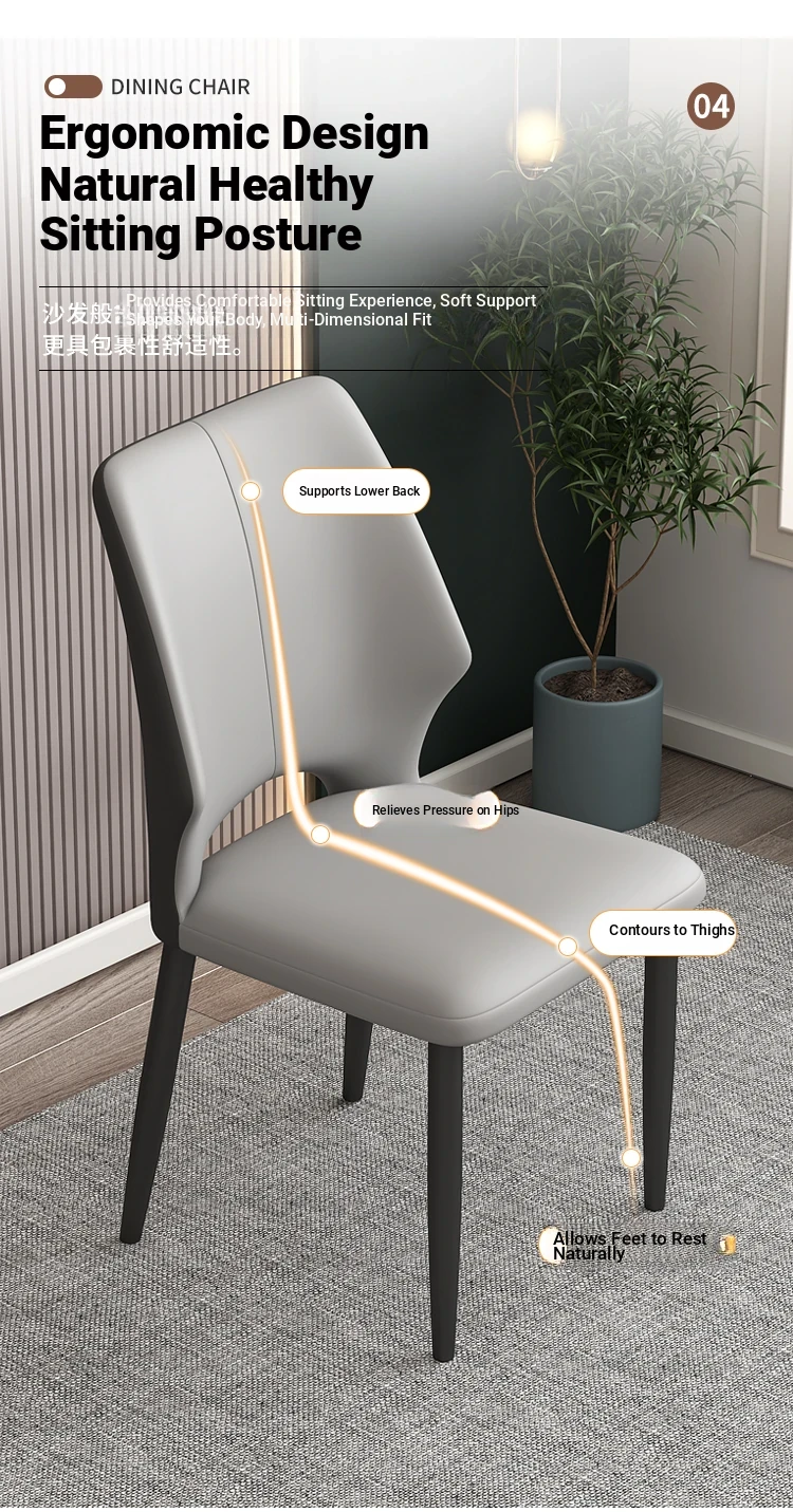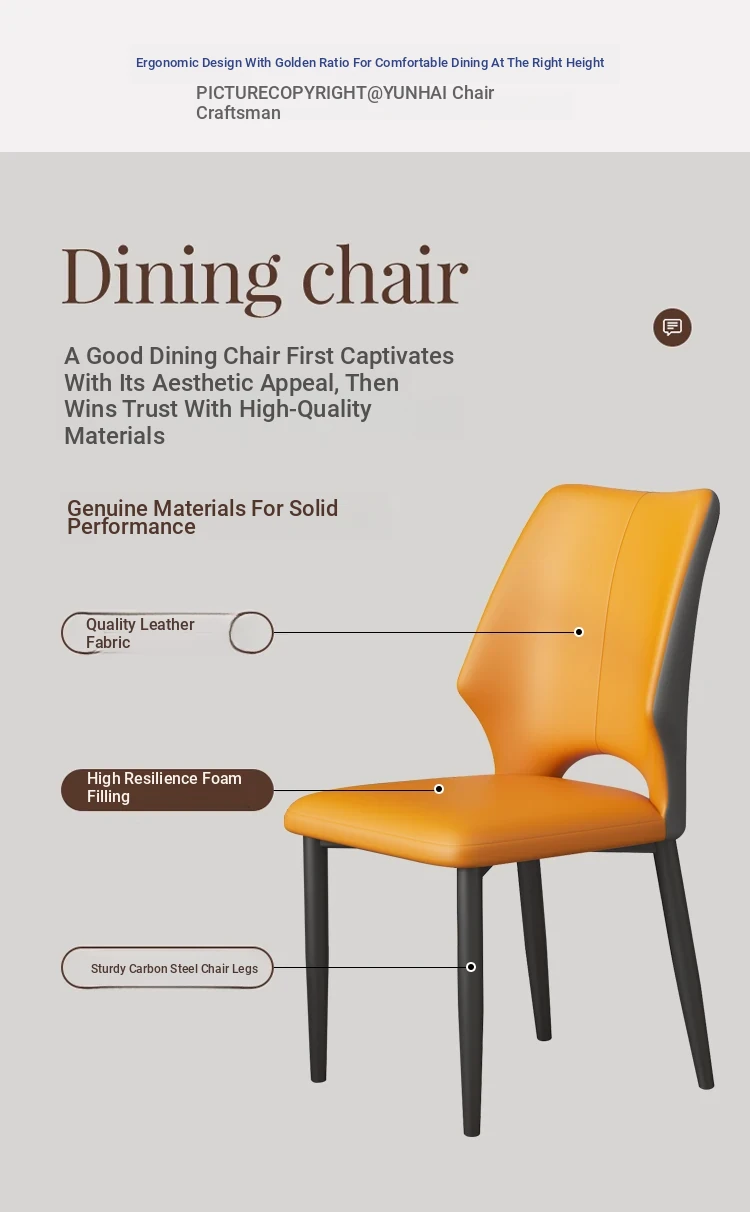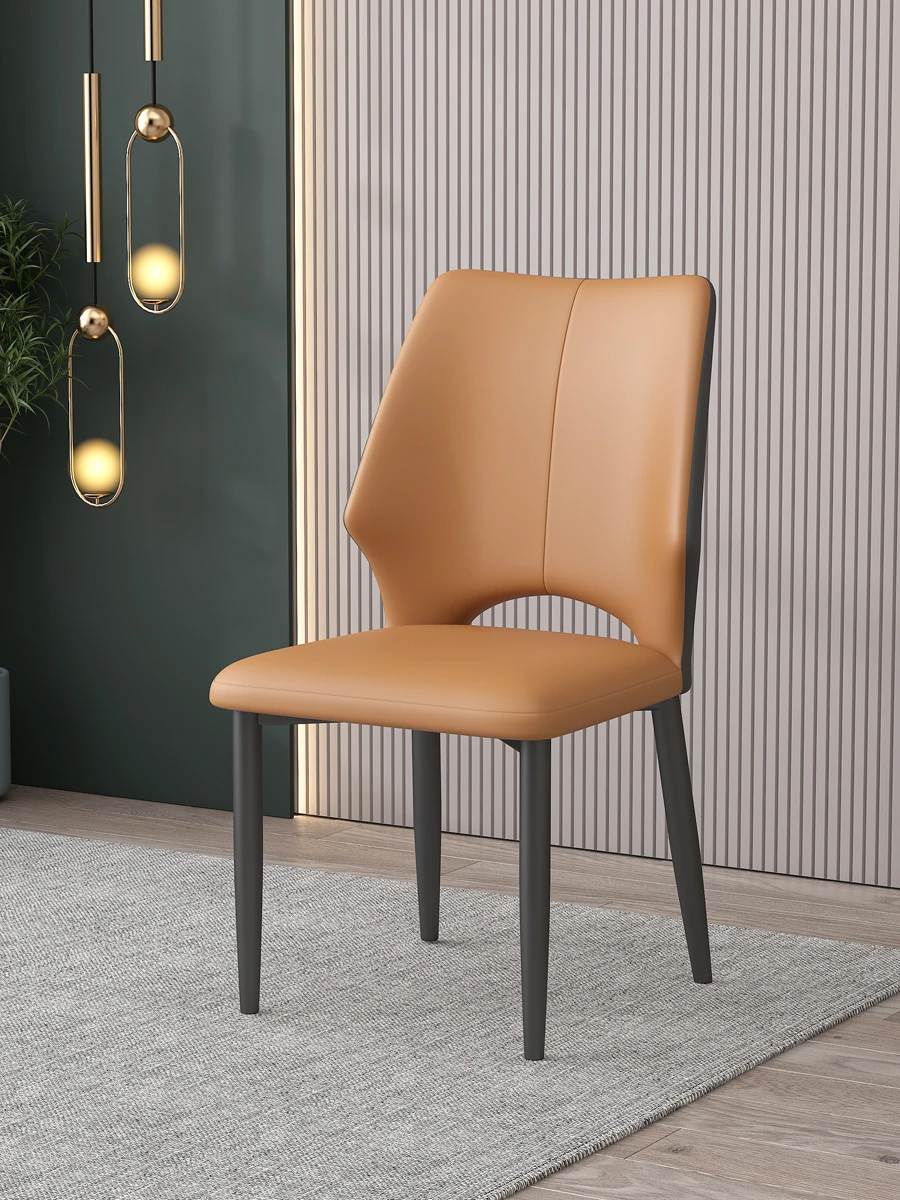 Italian Chic Leather Dining Chair – Modern Minimalist Design for Home & Nordic Style Meeting Spaces – Elegant Backrest Stool for Hotel Dining Tables