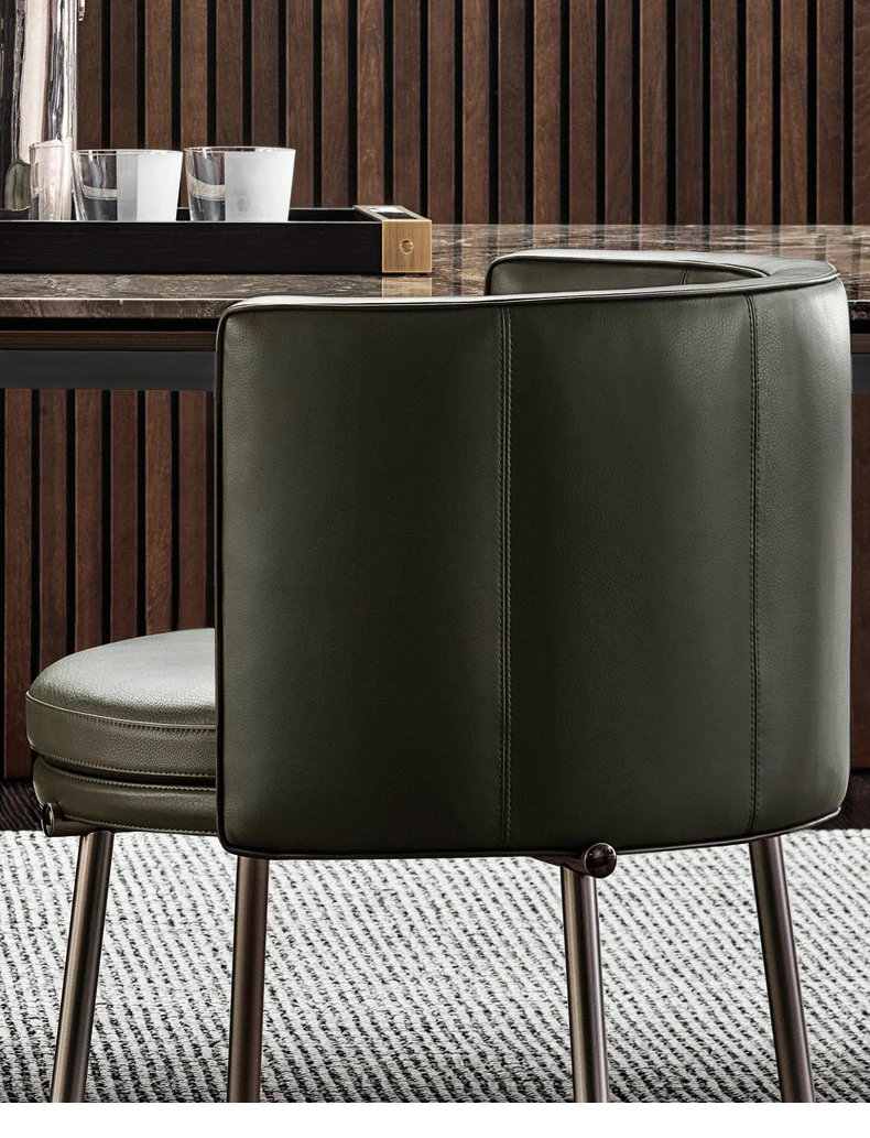 Italian Luxury Dining Chair - Modern Swivel Armchair with Real Leather, Perfect for Hotels and Meetings, Stylish Single Chair Design for a Touch of Elegance
