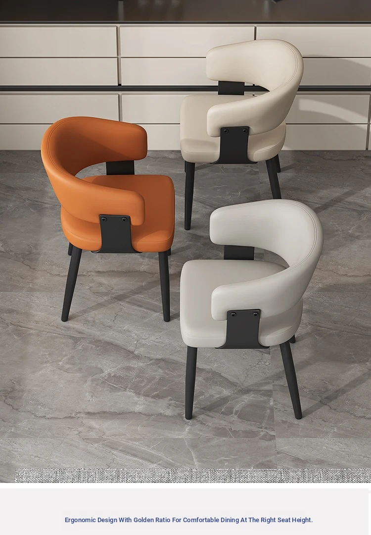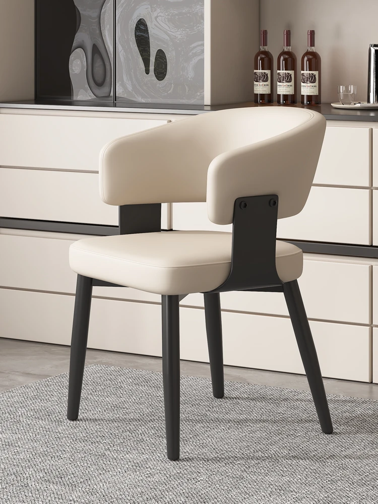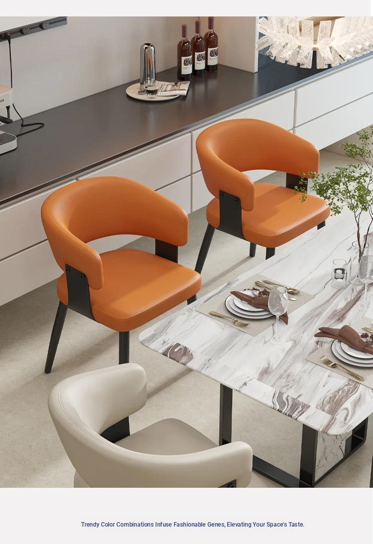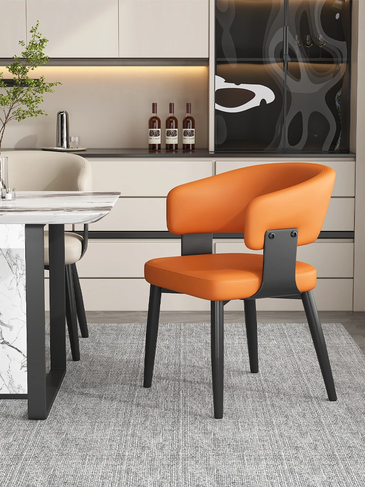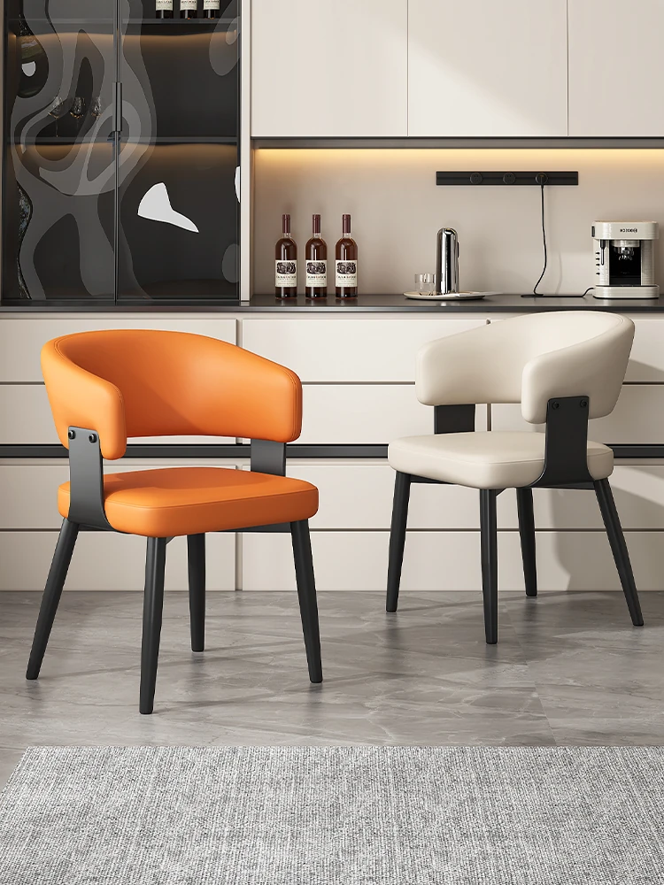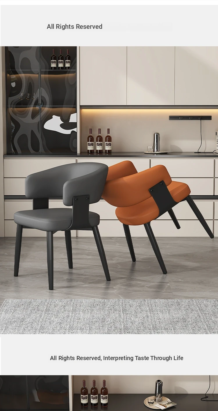 Italian Minimalist Leather Dining Chair - Modern Luxury Home & Restaurant Seating with Soft Backrest - Perfect for Hotels and Elegant Dining Experiences