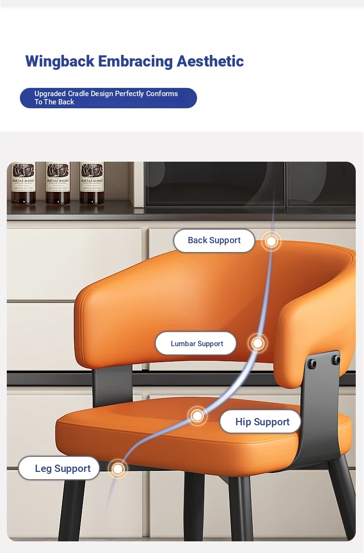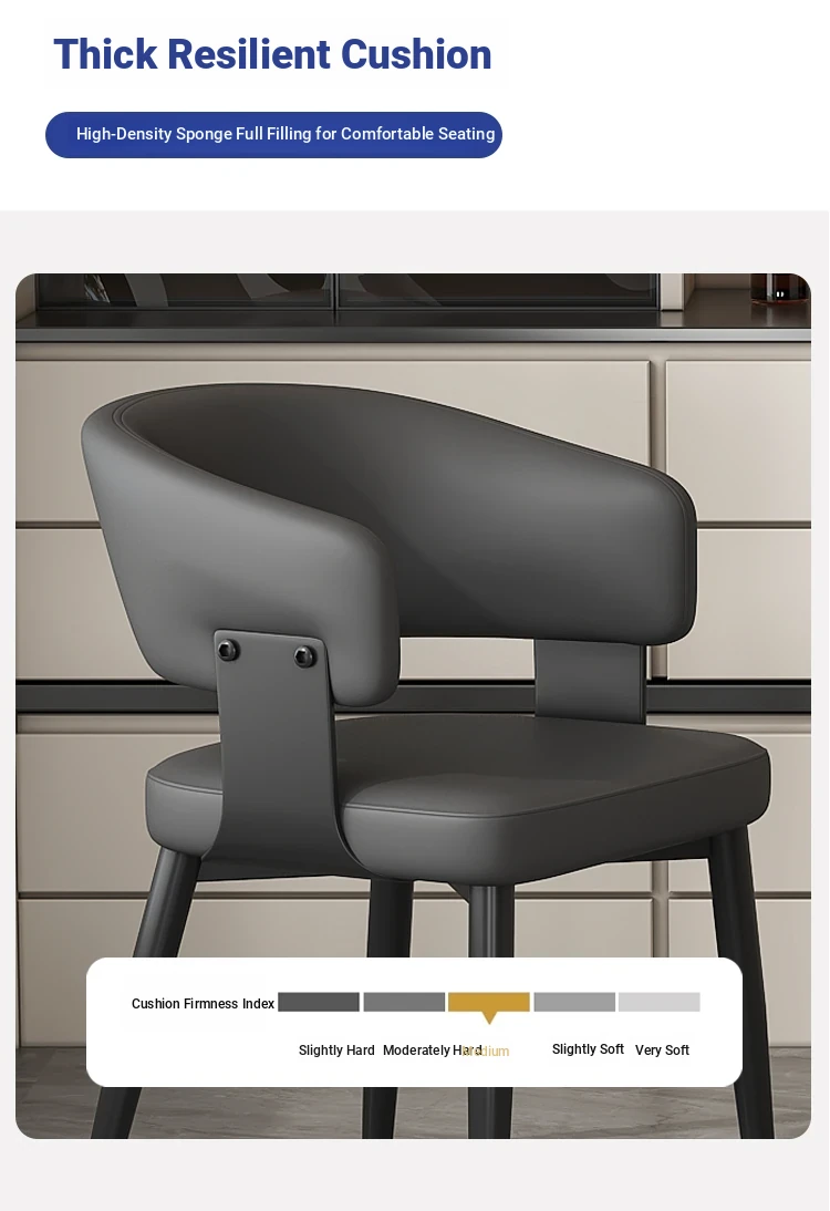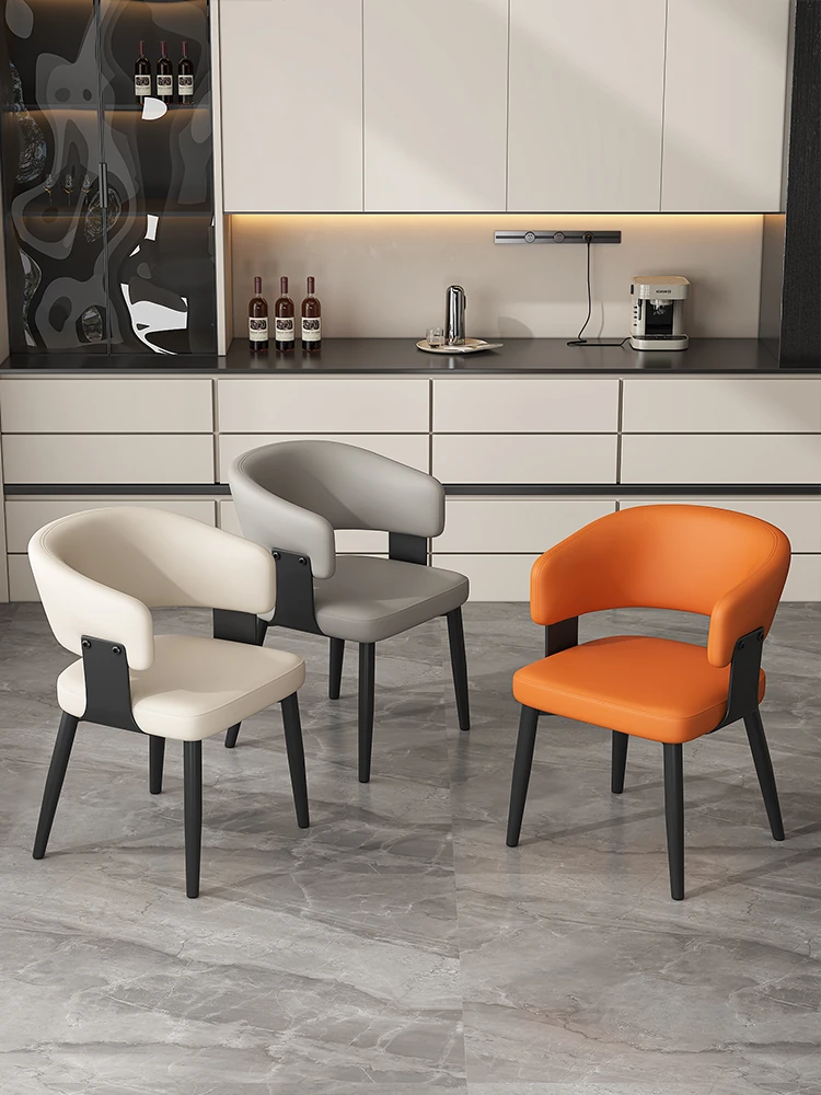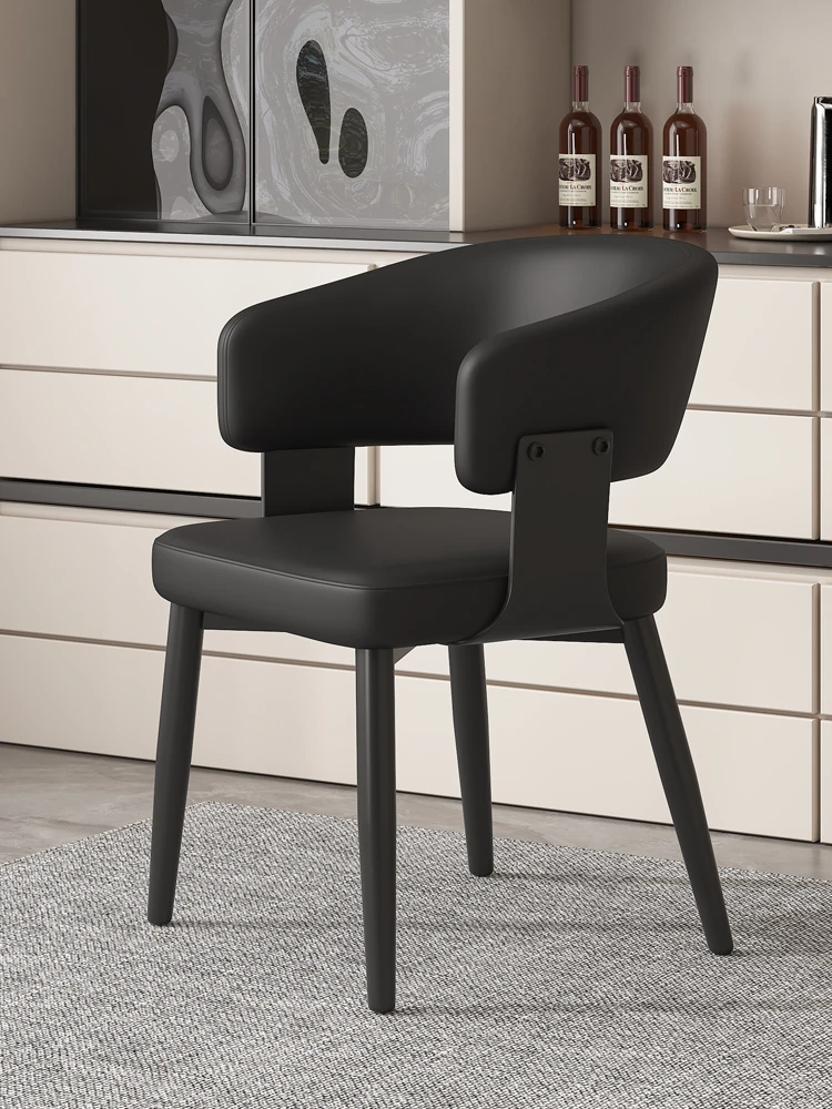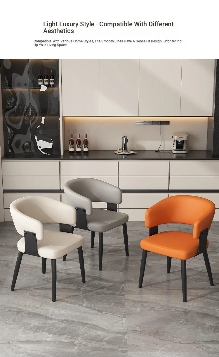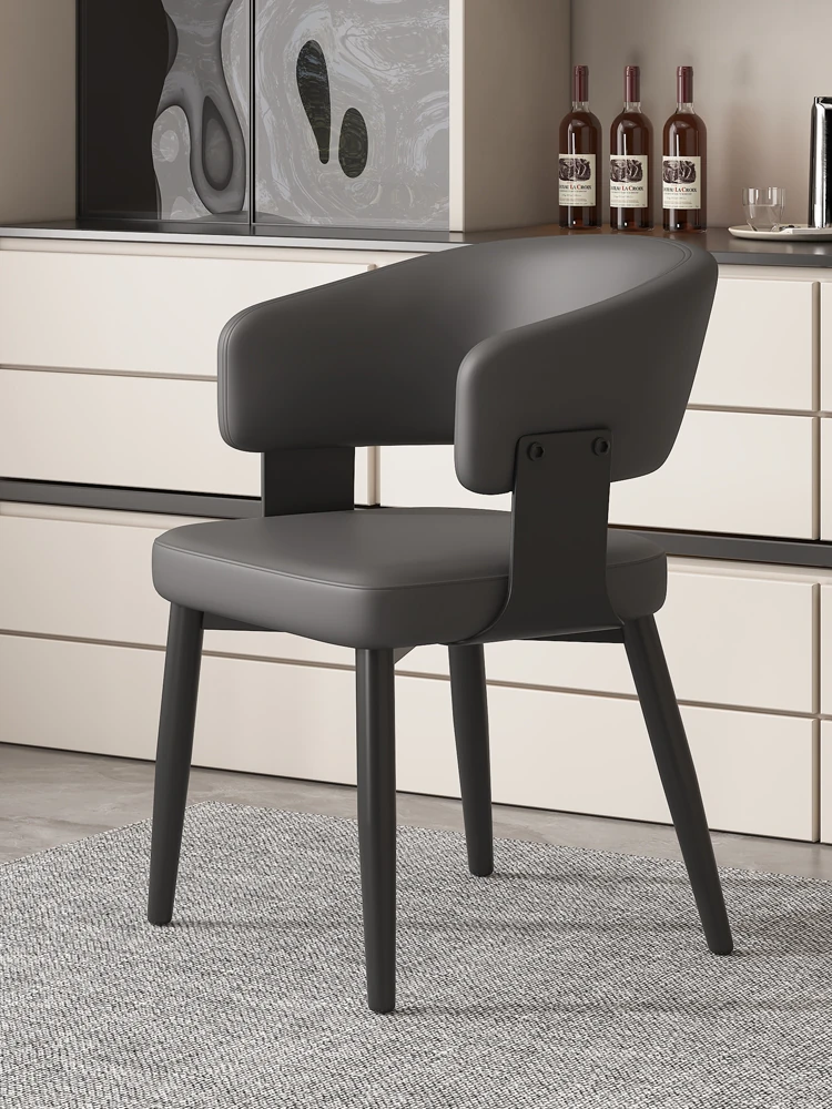 Italian Minimalist Leather Dining Chair - Modern Luxury Home & Restaurant Seating with Soft Backrest - Perfect for Hotels and Elegant Dining Experiences