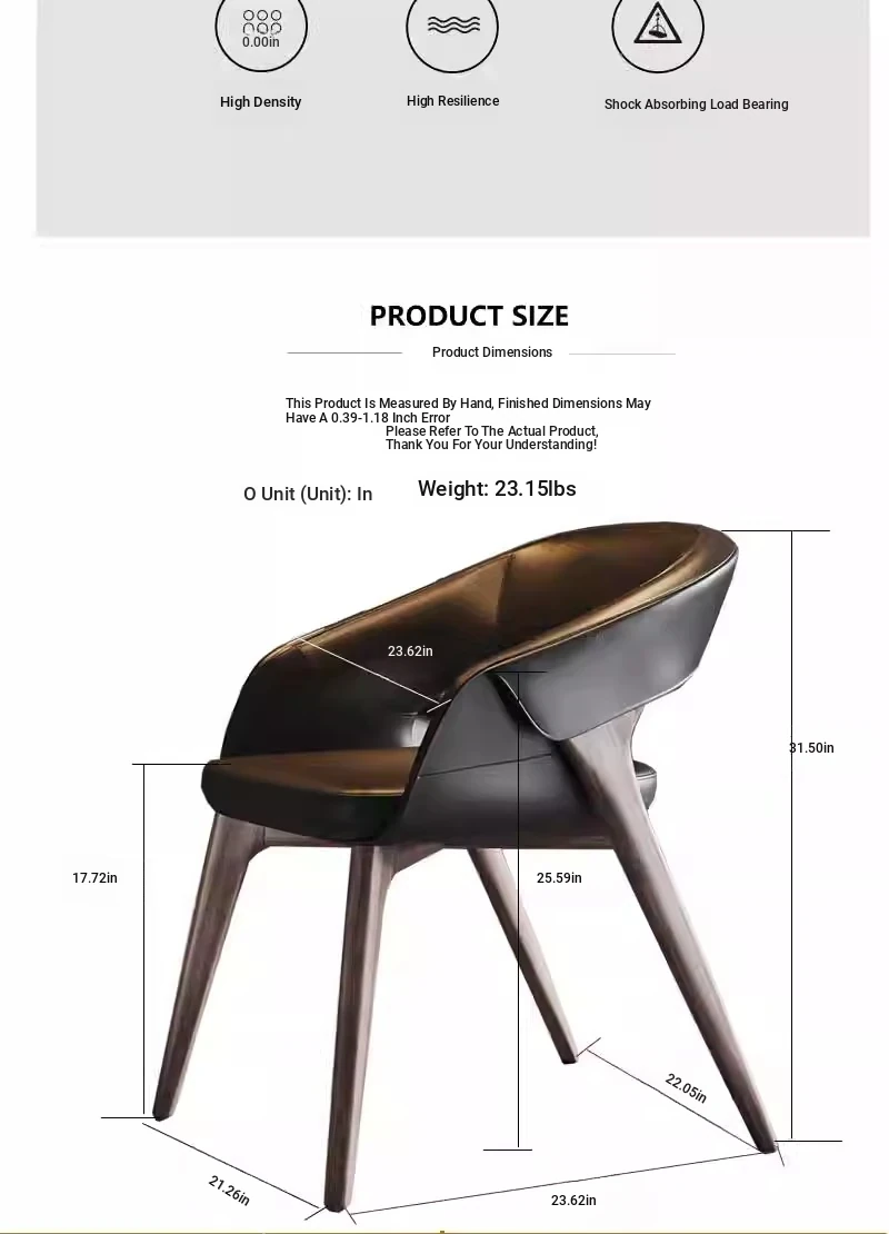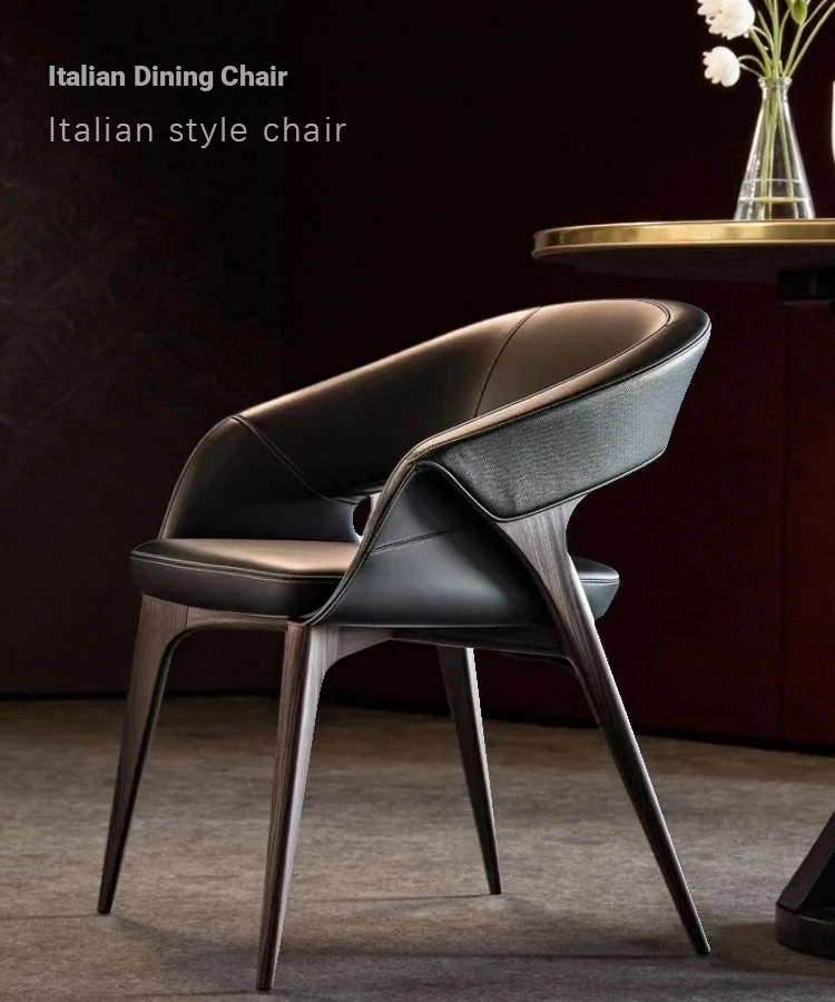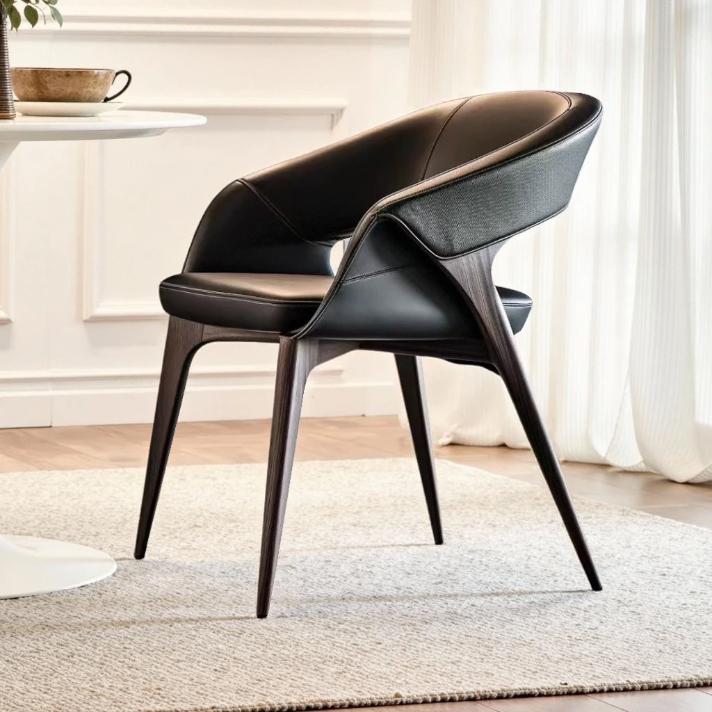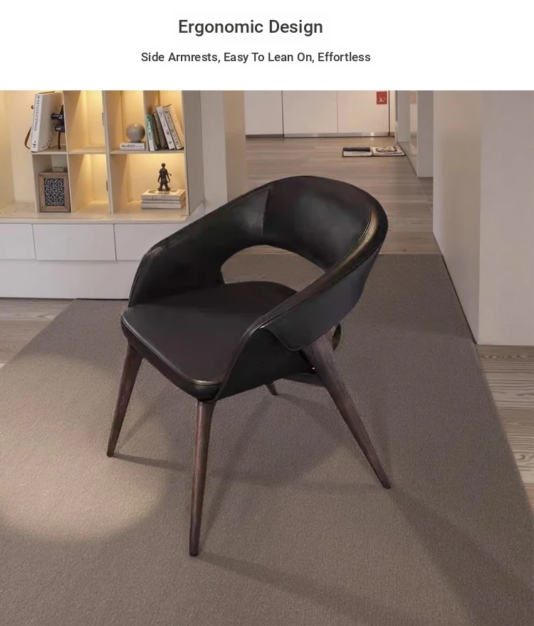 Italian Minimalist Luxury Dining Chair - Genuine Leather Wabi-Sabi Style with Armrests, Ash Wood Design for Home and Conference Use
