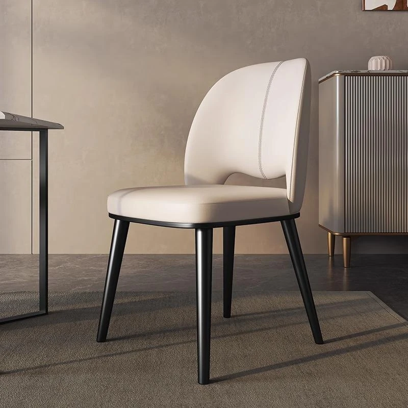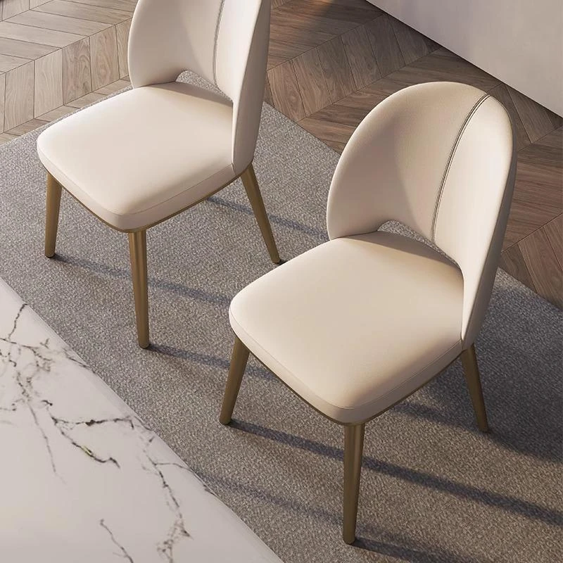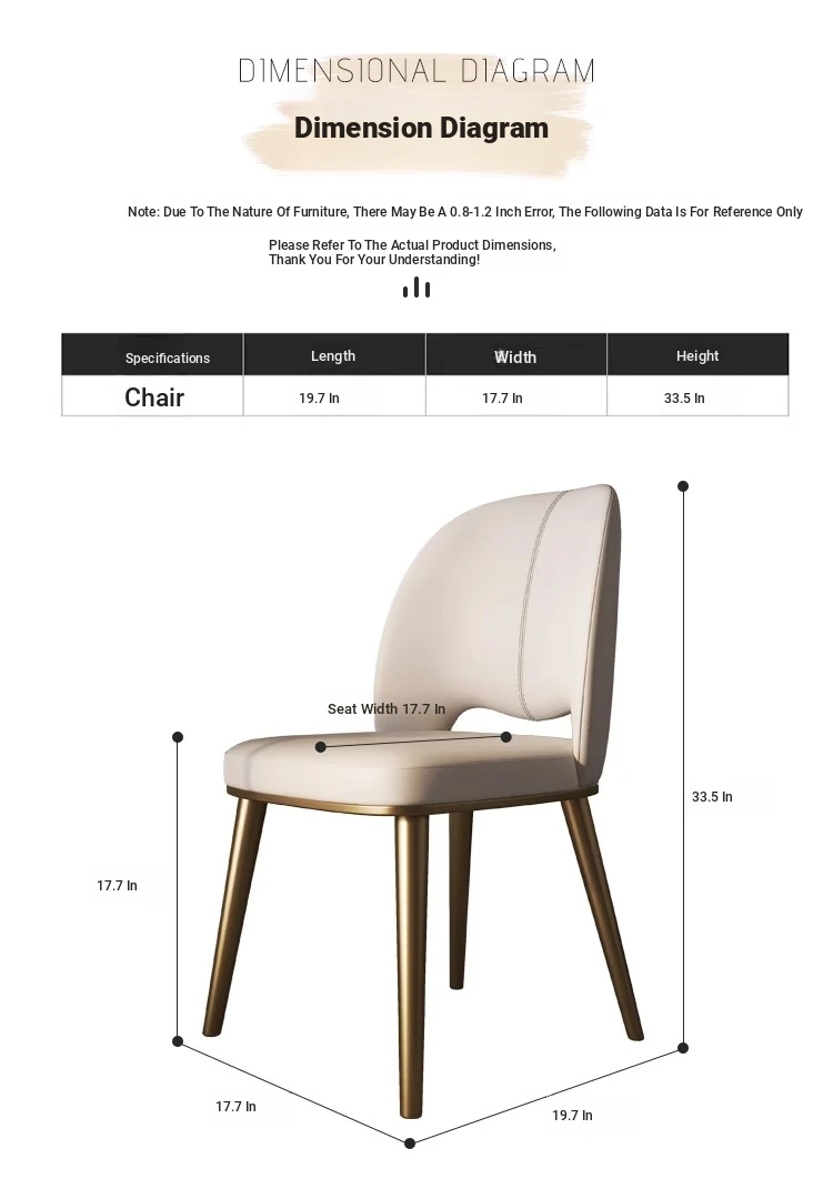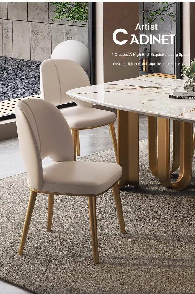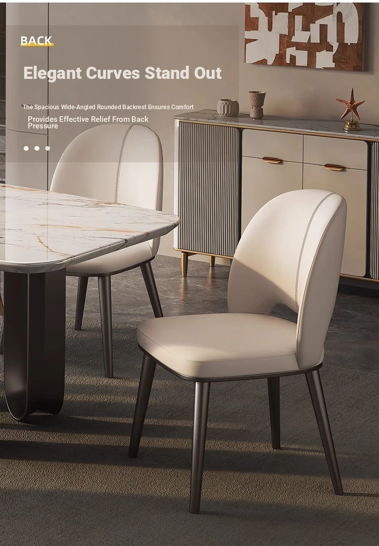 Luxury Genuine Leather Dining Chair for Small Spaces - Chic and Elegant Design with Stainless Steel Base, Premium First Layer Cowhide Upholstery, Perfect for Your Home Dining Experience!