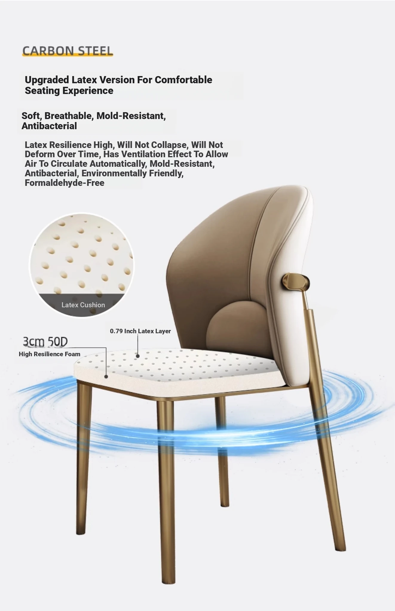Titanium shelf + Artificial Abrasion Resistant leather Import latex seat cushion