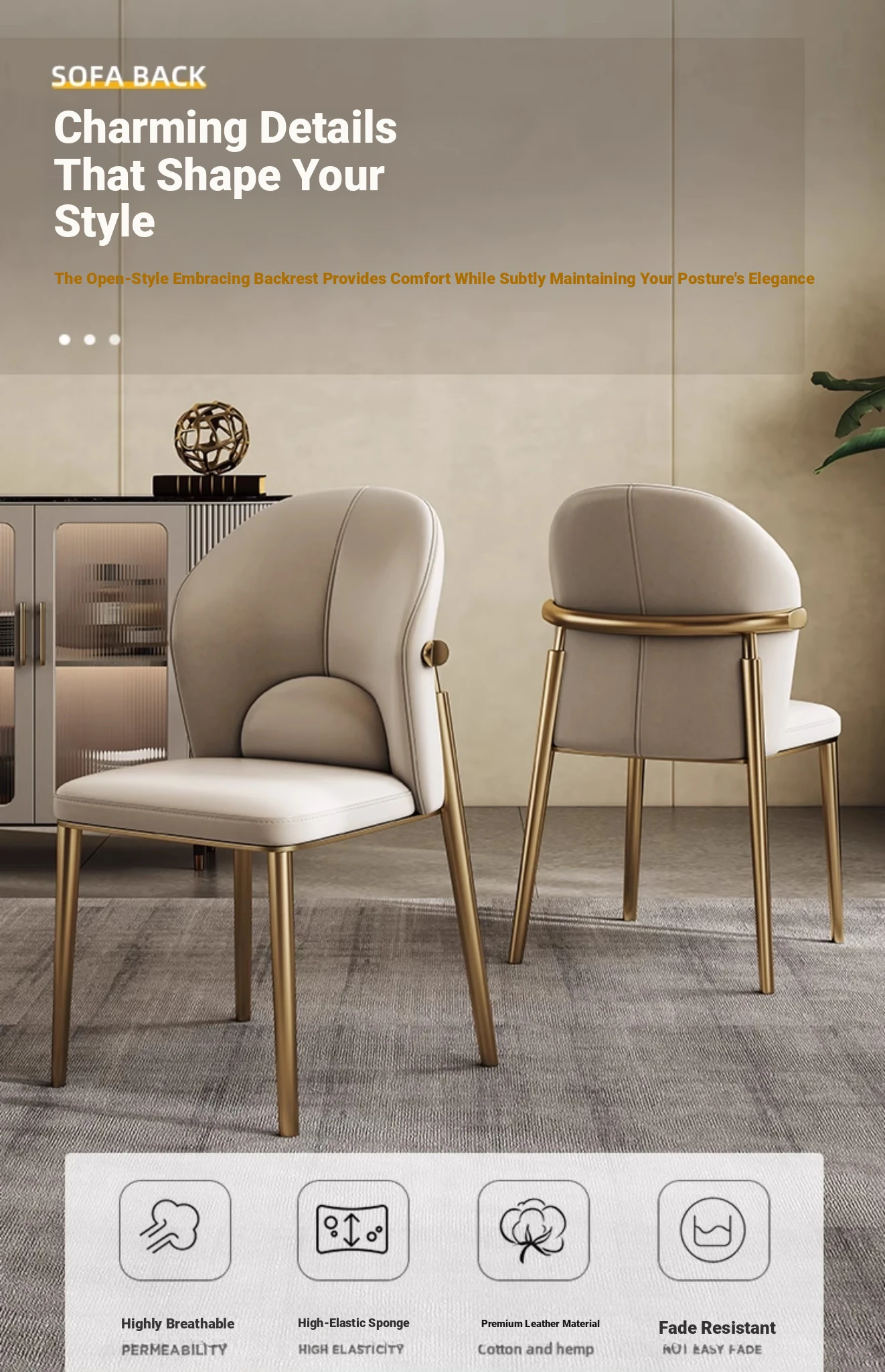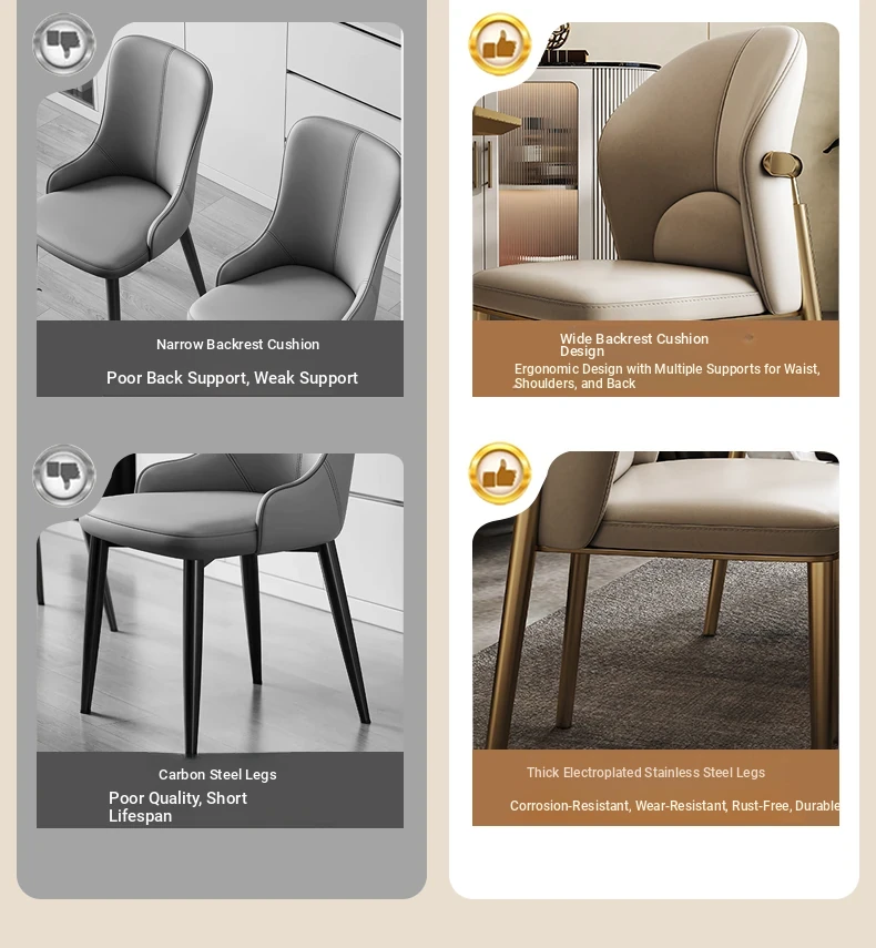 Luxury Genuine Leather Dining Chair - Nordic Style, Comfortable Backrest for Home, Restaurant, and Hotel. Modern Minimalist Design with Top-Grade Cowhide Upholstery. Perfect for Elegant Dining Experiences!