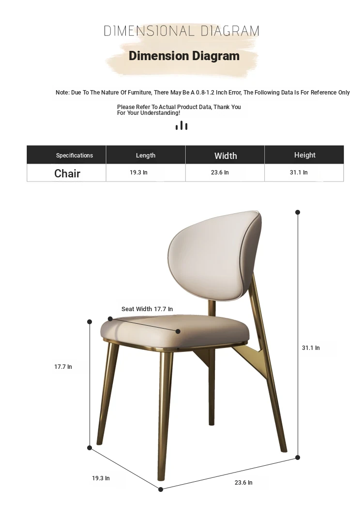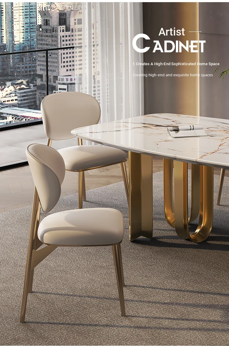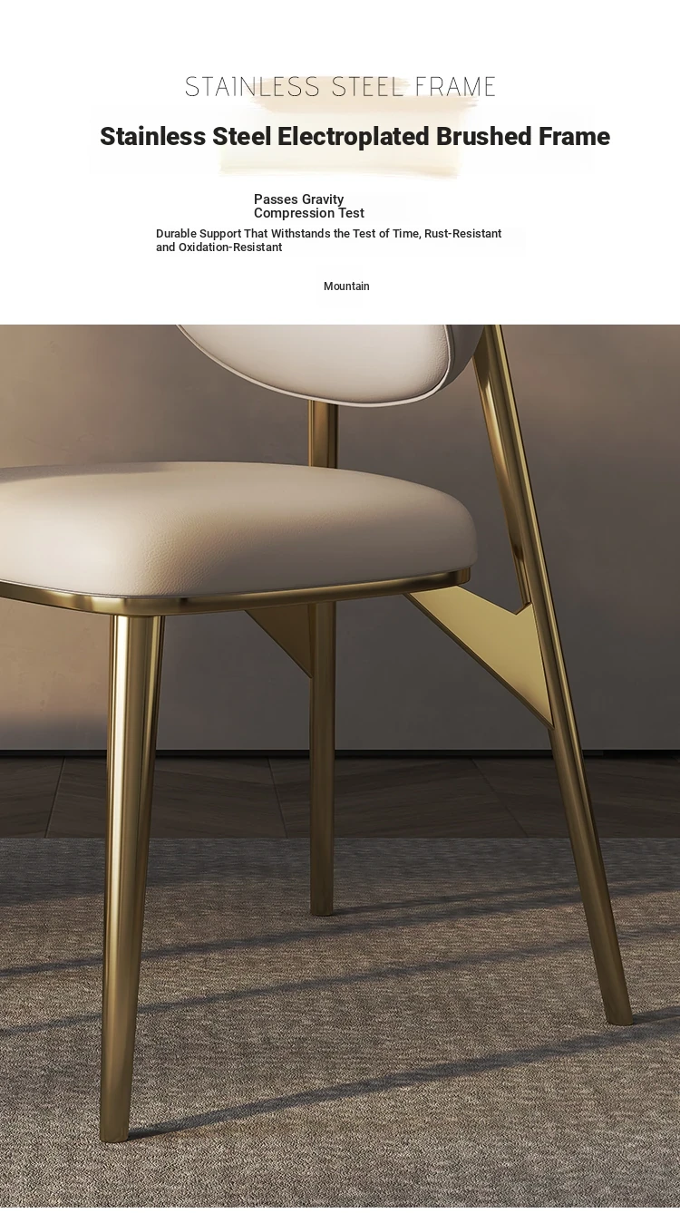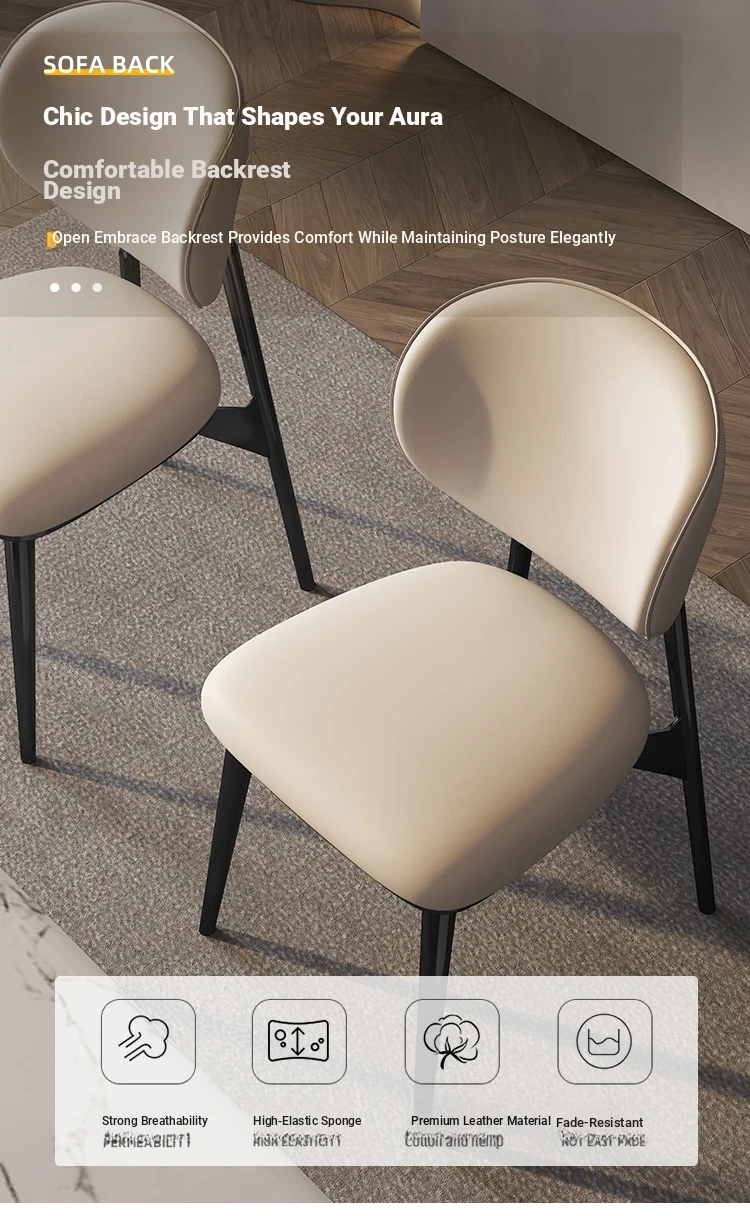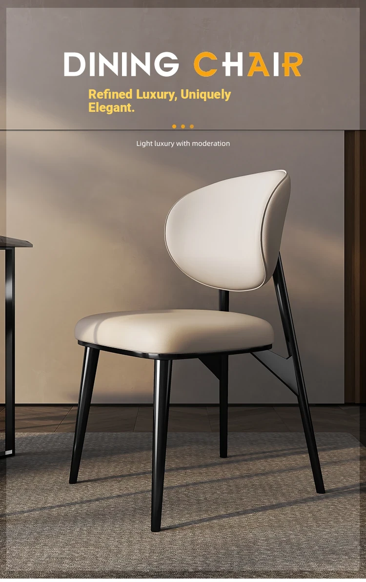 Luxury Leather Dining Chair - Premium Top Grain Cowhide, Stylish Backrest Chair for Small Spaces, Elegant Modern Minimalist Design with Stainless Steel Frame