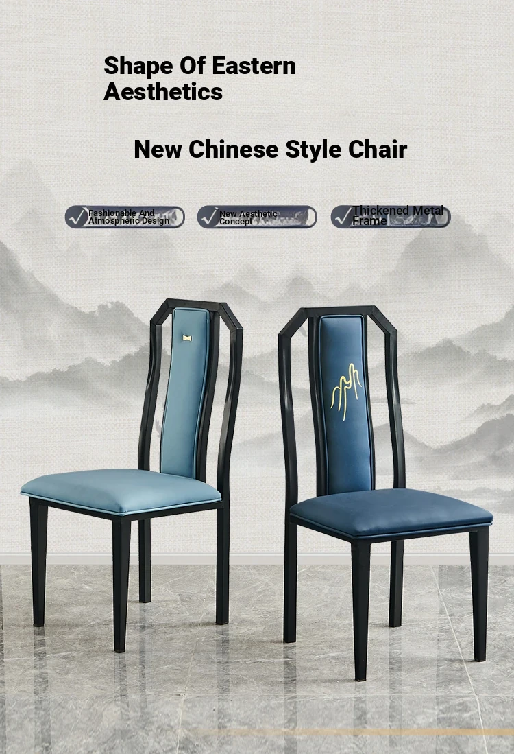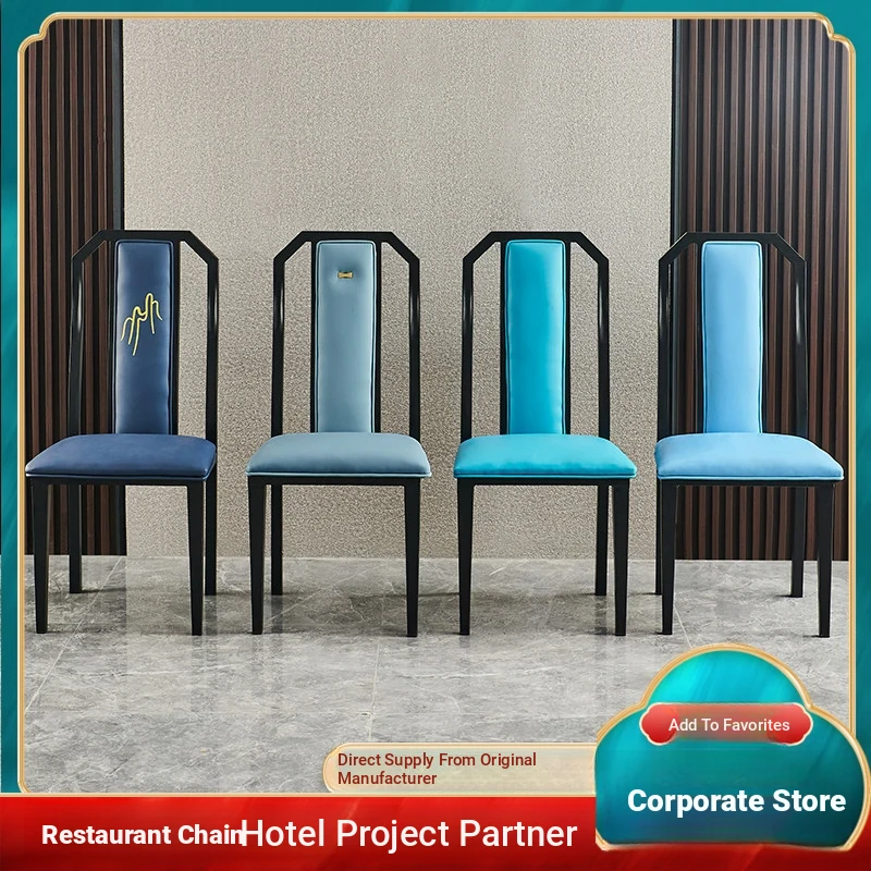 Modern Chinese Style Restaurant Chairs with Backrest - Elegant Iron Frame Dining Chairs for Tea Houses, Private Rooms, and Hot Pot Restaurants - Perfect Blend of Classic and Contemporary Design