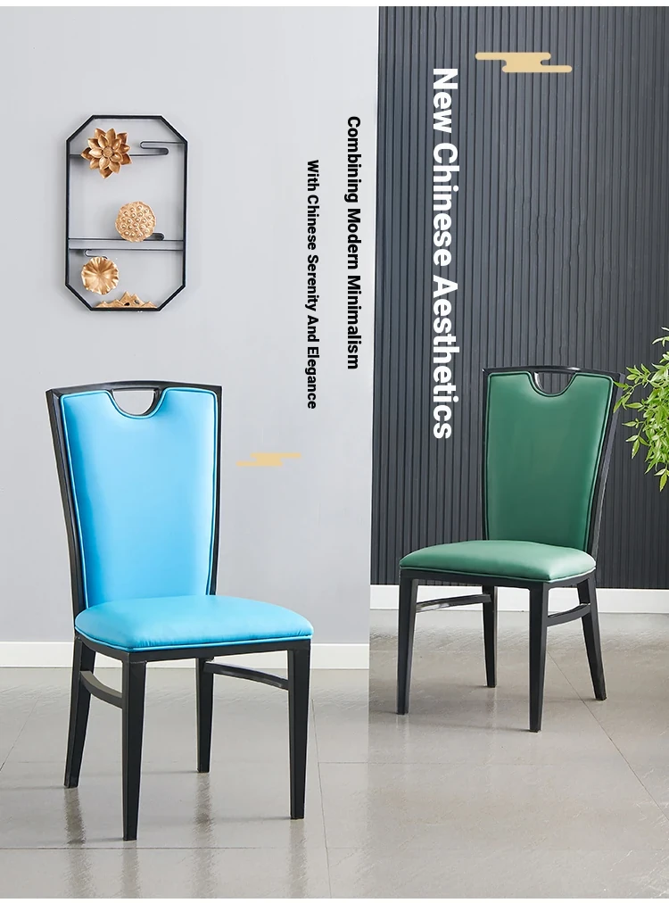 Modern Chinese-Style Hotel Dining Chair - Elegant Iron Frame, Minimalist Design, Perfect for Private Rooms, Restaurants, Banquets, Hot Pot and BBQ Venues. Comfortable Backrest for an Enjoyable Dining Experience.