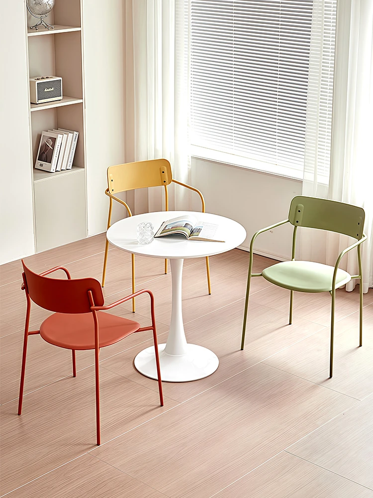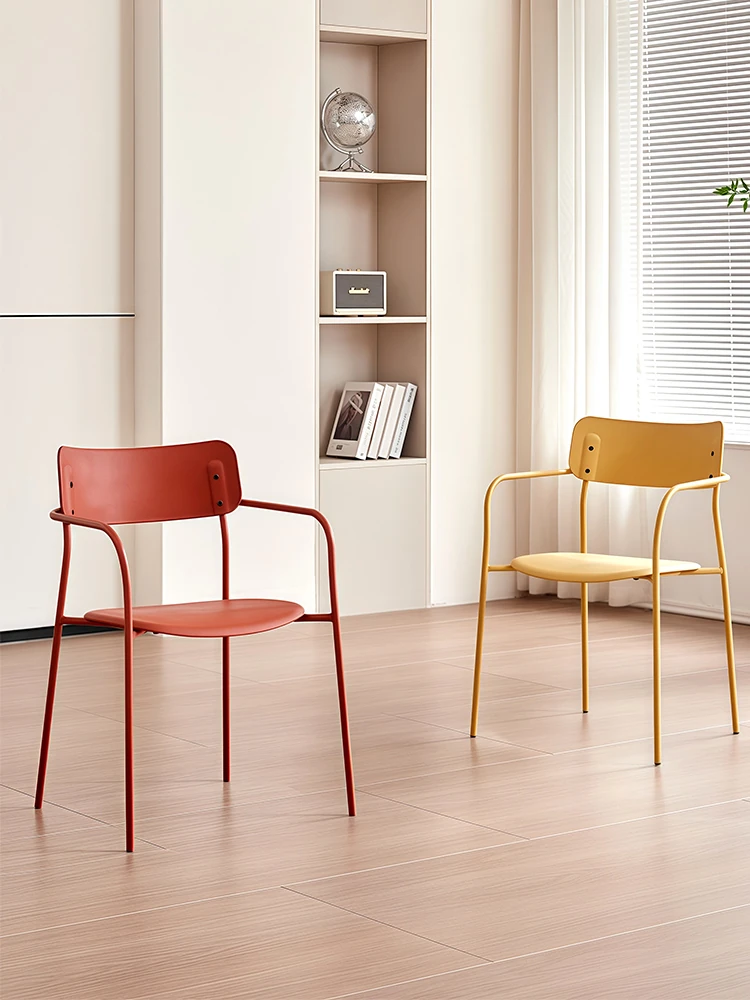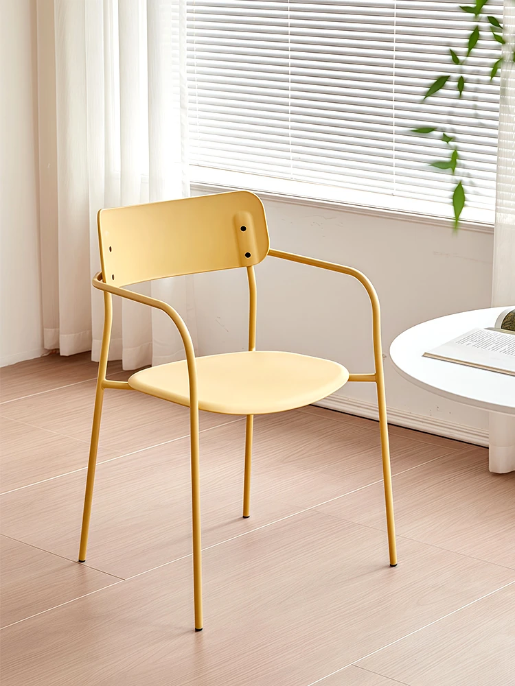 Modern Creative Iron Backrest Armrest Dining Chair - Minimalist Design for Cafés and Tea Shops, Perfect for Reception and Meeting Spaces, Stylish and Comfortable Seating Solutions.