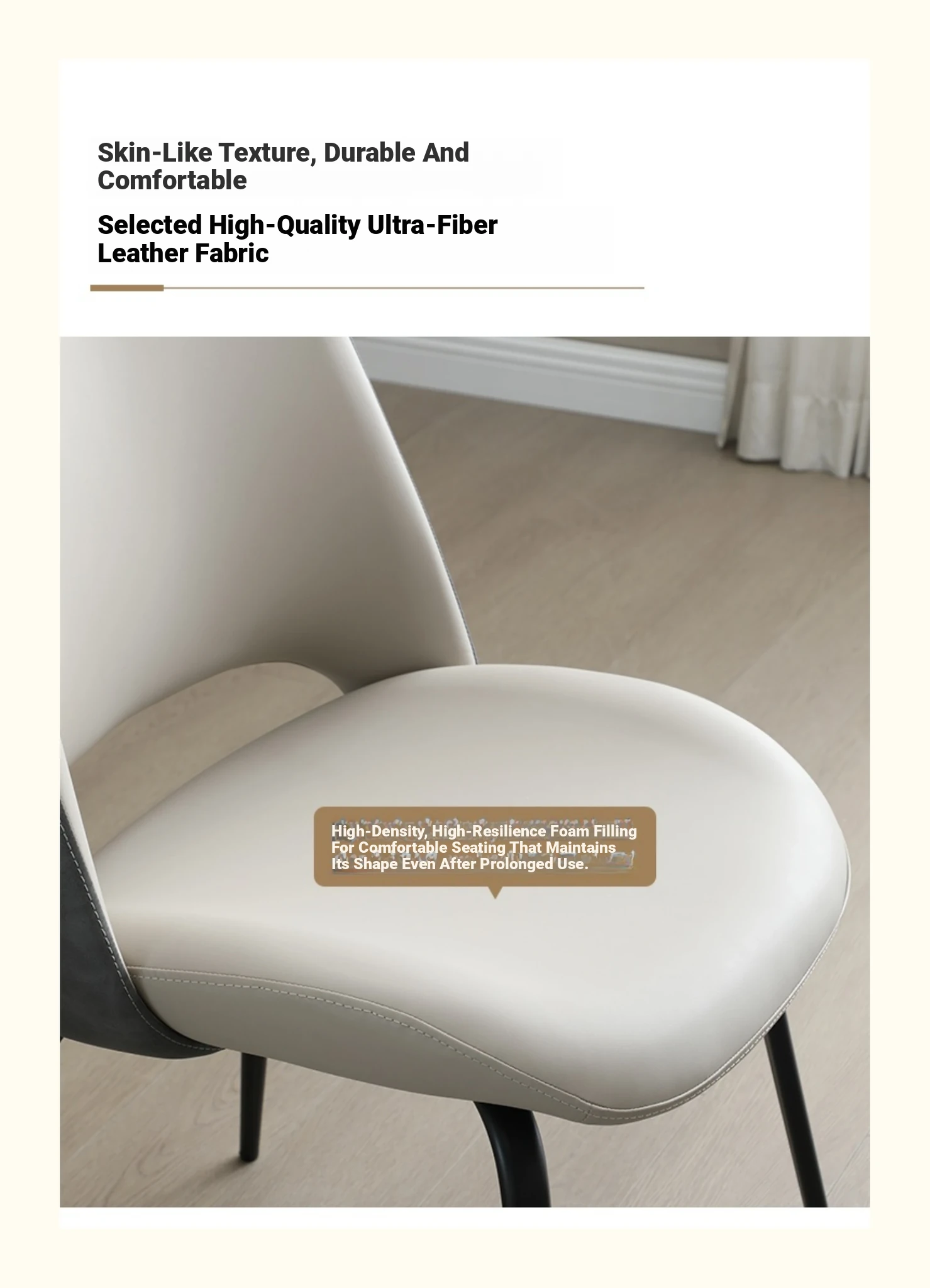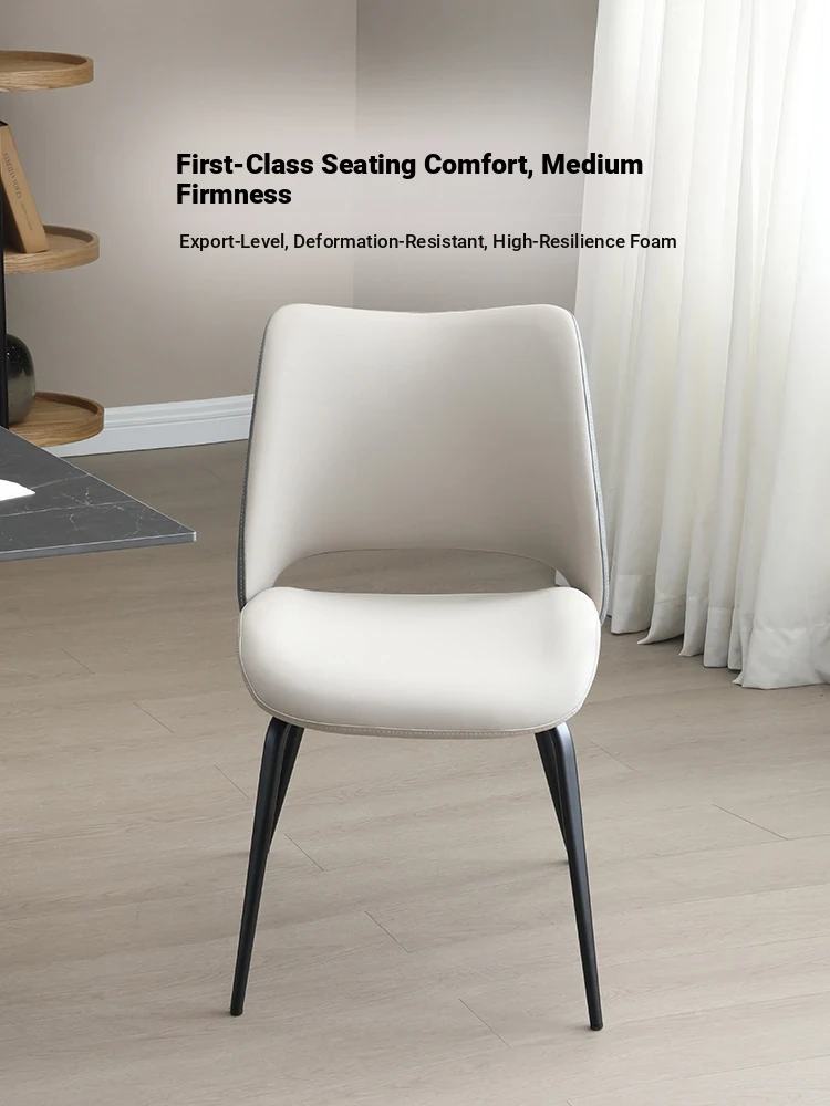 Modern Italian Minimalist Dining Chair with Ultra-Fine Leather Upholstery - Luxurious and Stylish Backrest Chair for Home Dining Rooms and Restaurants