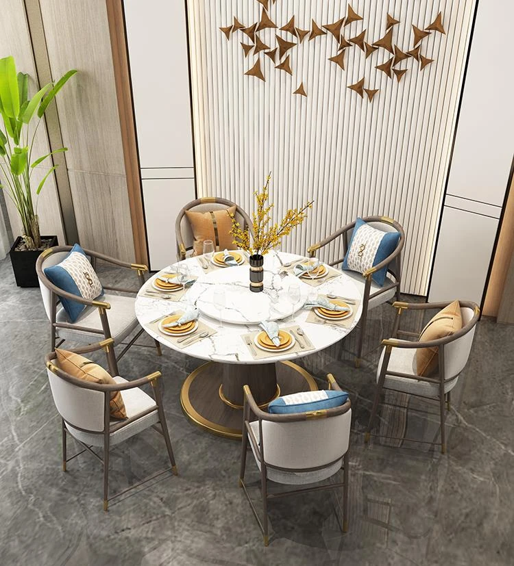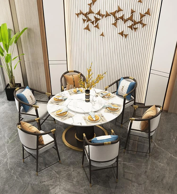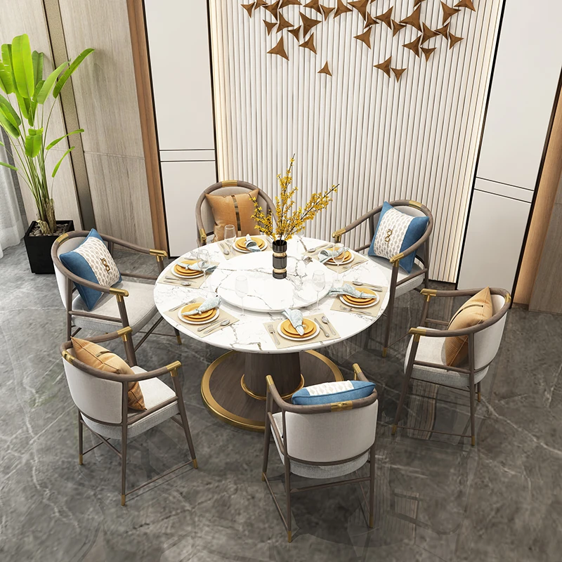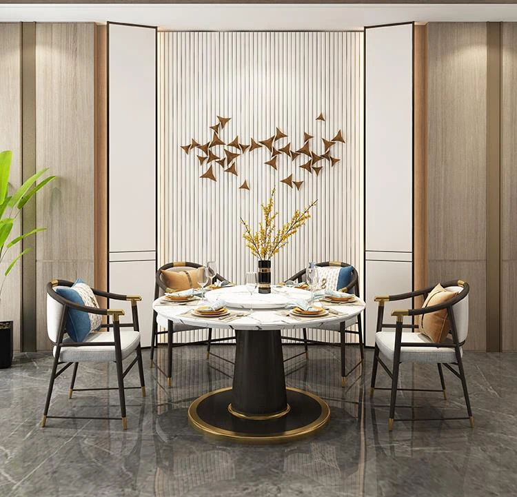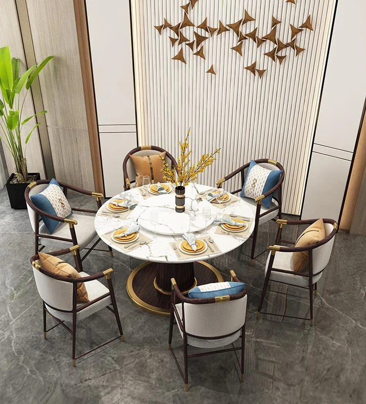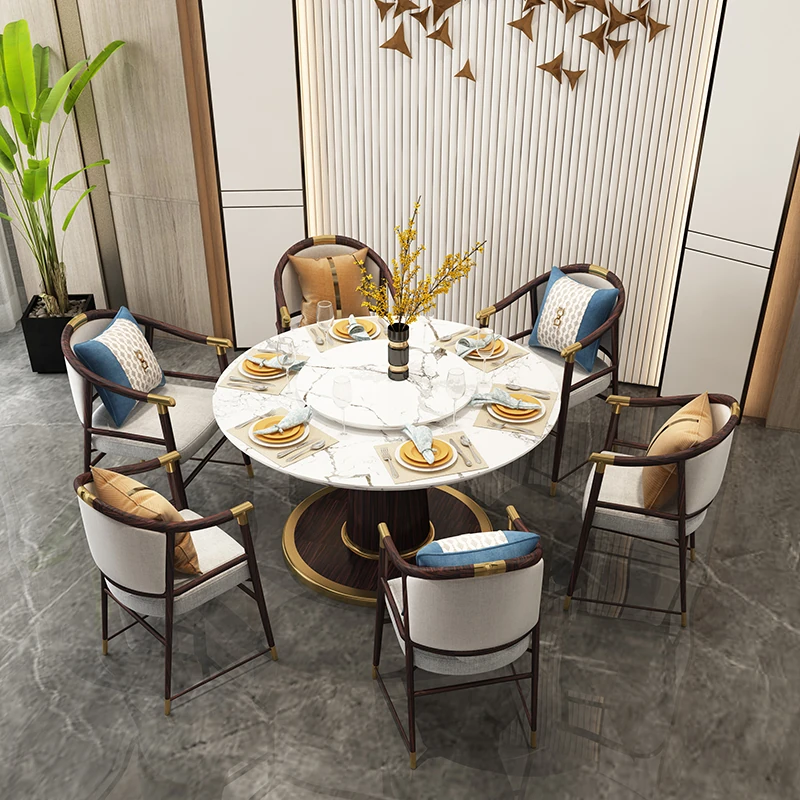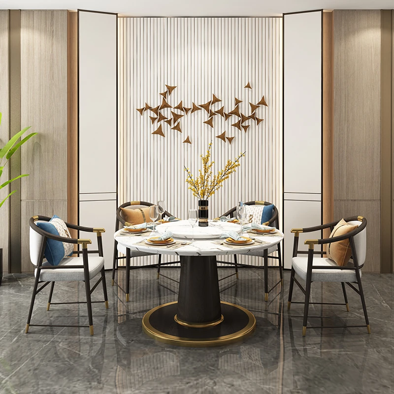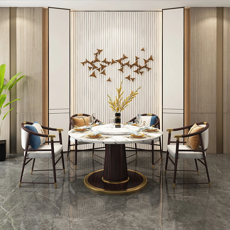 Modern Minimalist Round Dining Table Set with Solid Wood Chairs - Elegant New Chinese Style Zen Dining Experience