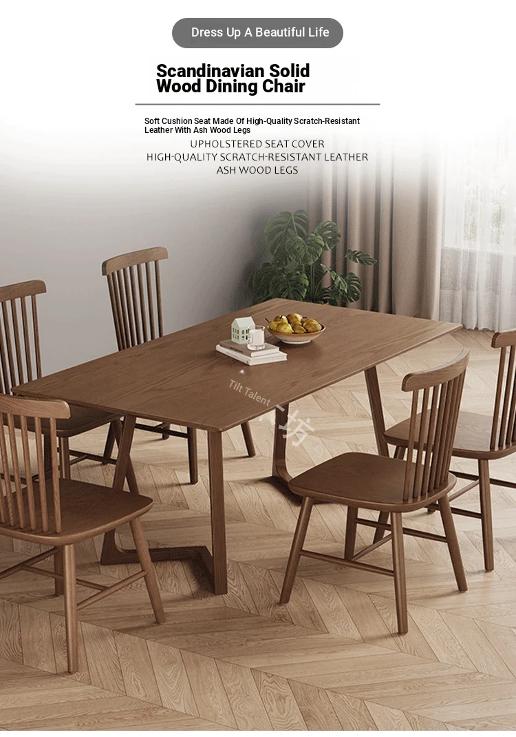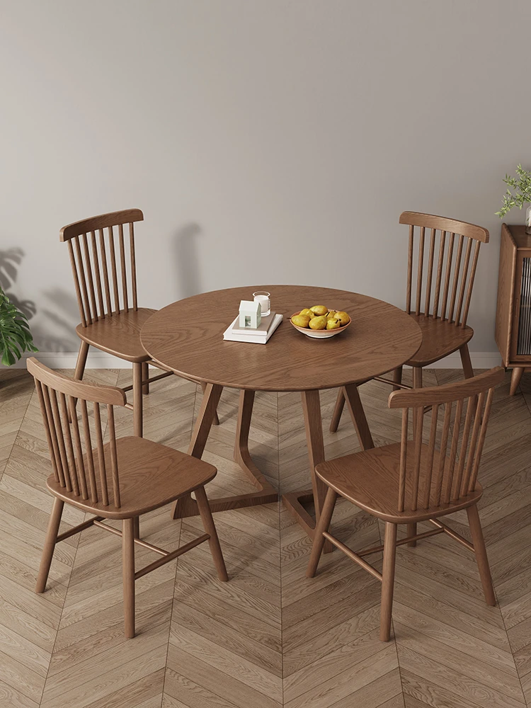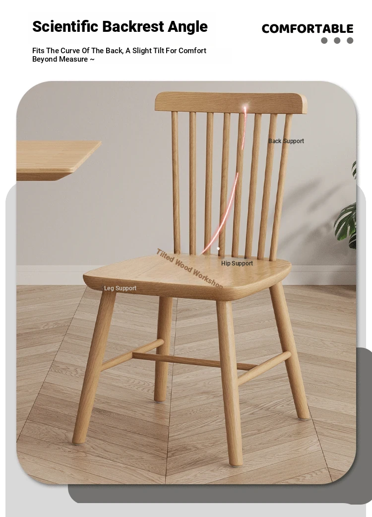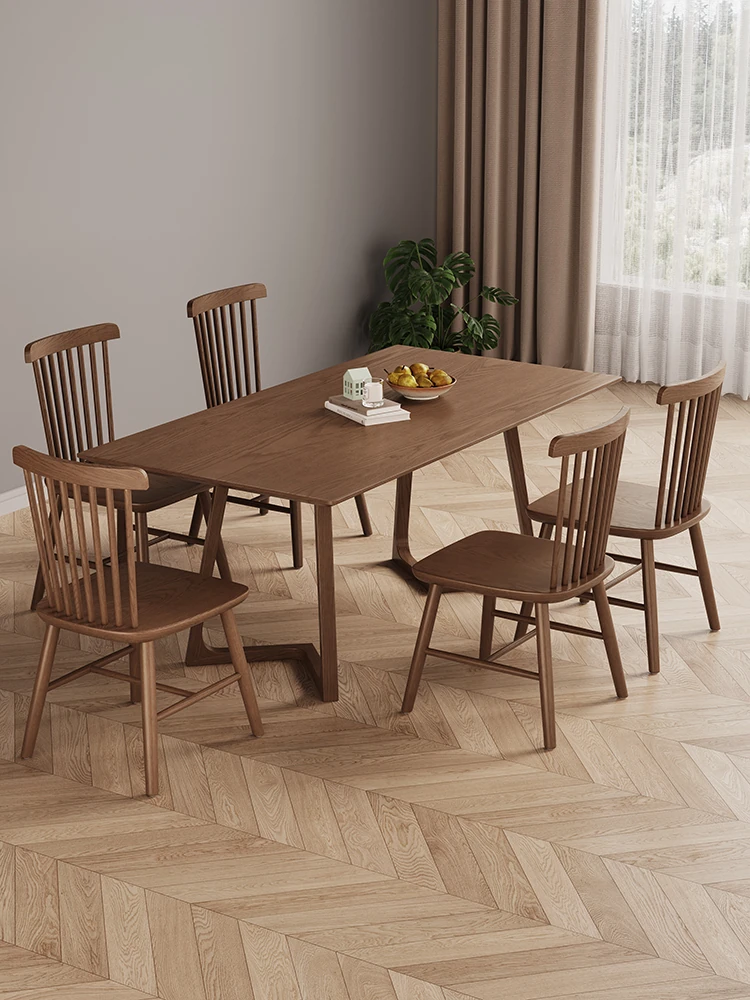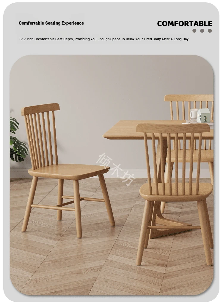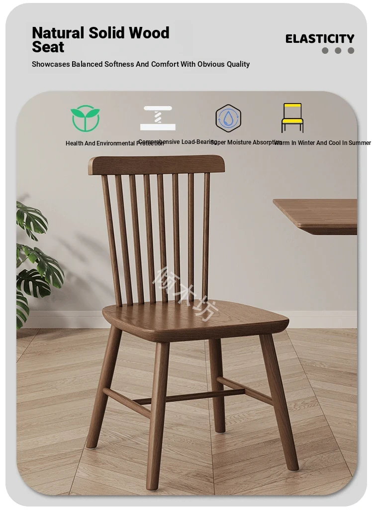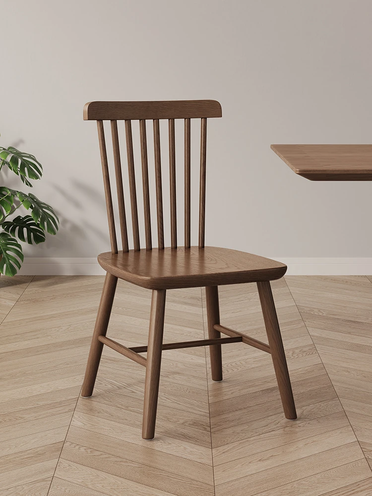 Modern Minimalist Solid Wood Dining Chair in Black Walnut Finish - Windsor Style for Home Dining Room & Oak Study Table - Comfortable Backrest Design