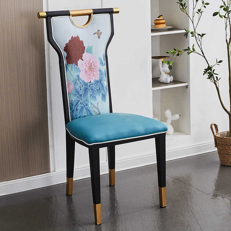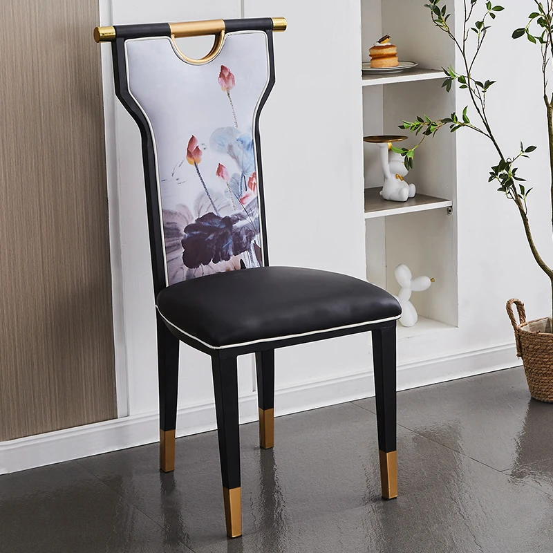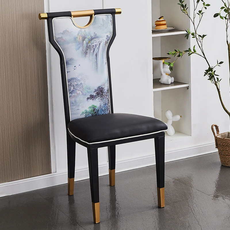 Modern New Chinese Style Luxury Restaurant Chairs with Backrest - Elegant Iron Dining Chairs for Hotel Banquets and Themed Hotpot Rooms
