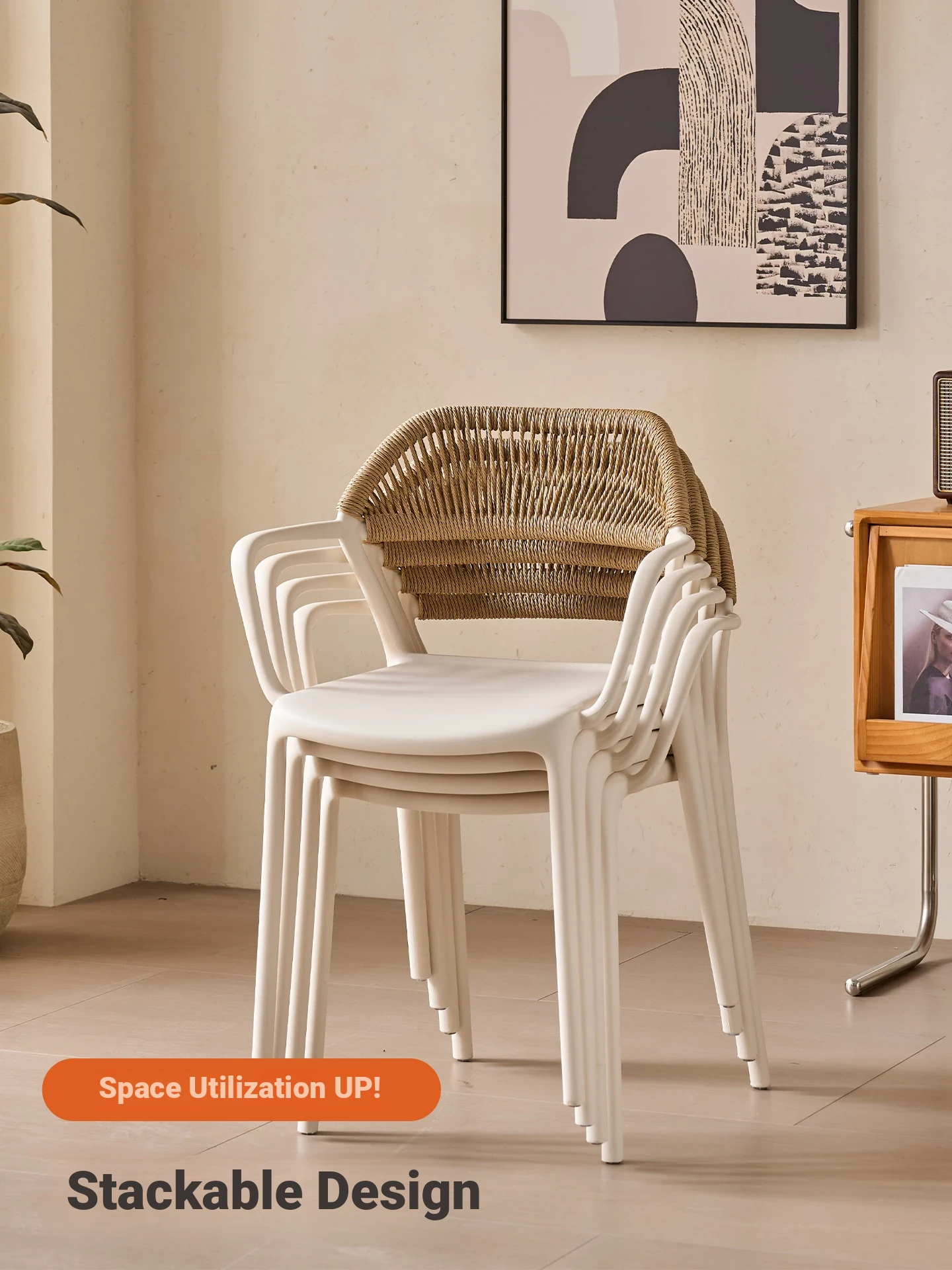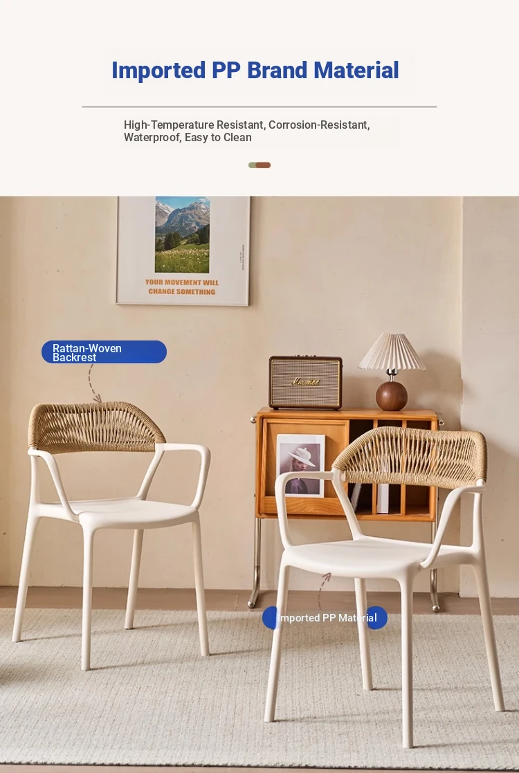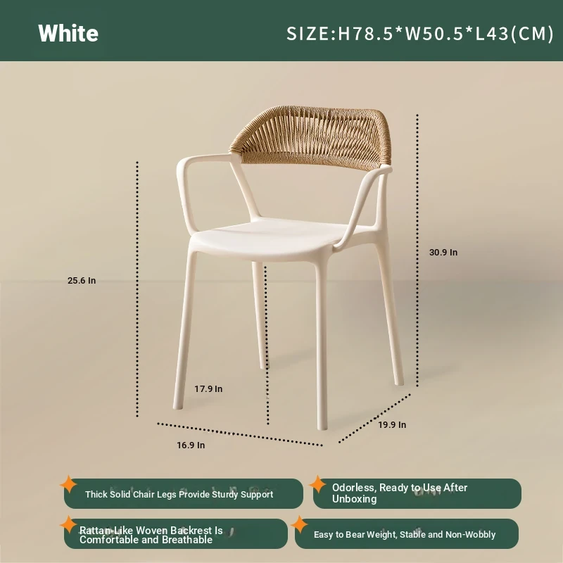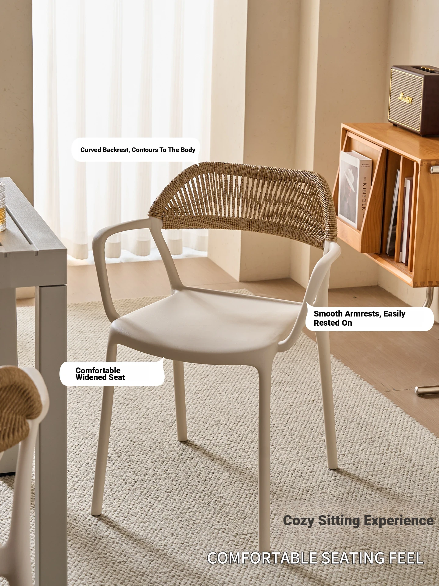Nordic Creamy Woven Plastic Dining Chair - Modern Minimalist with Backrest for Home, Perfect for Balcony Table Set, Stylish Leisure Chair